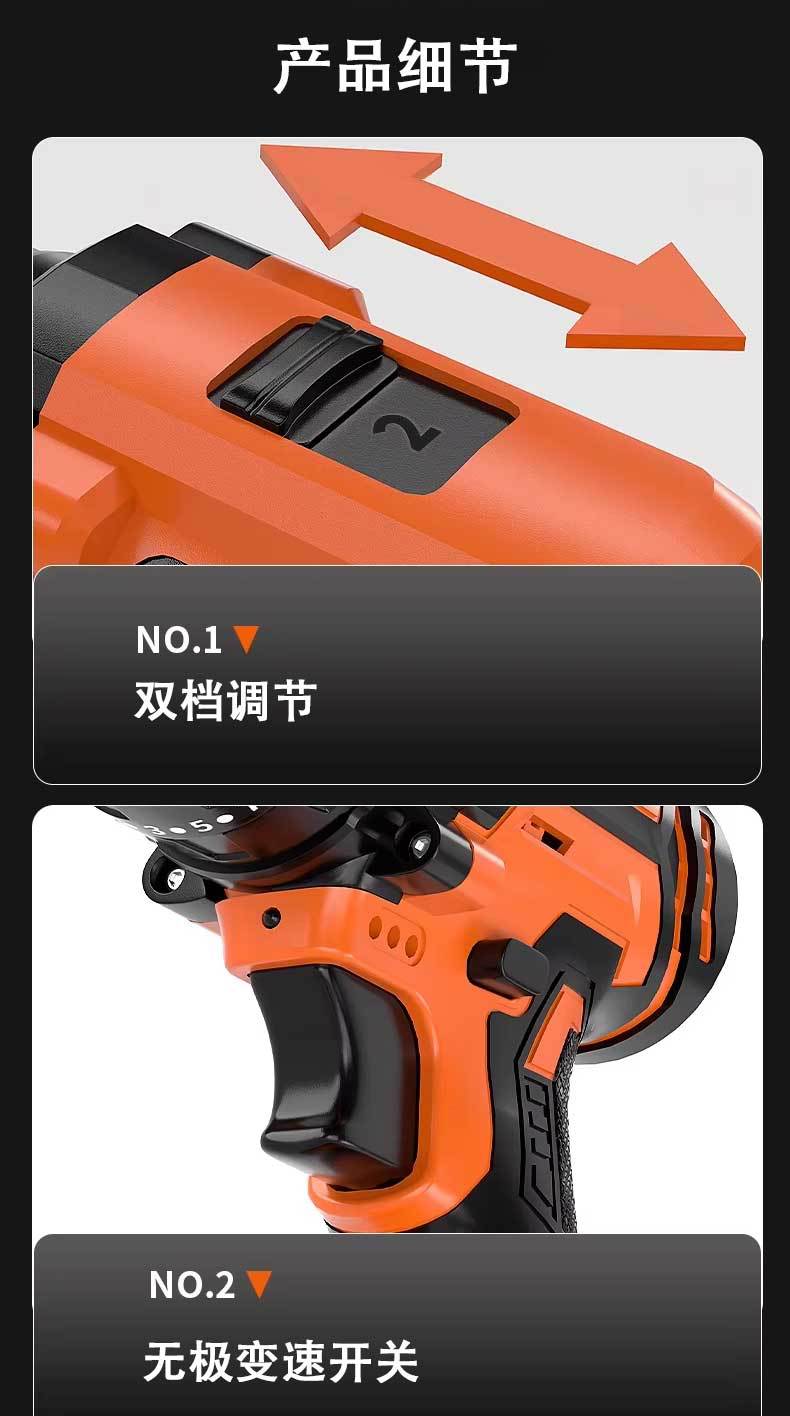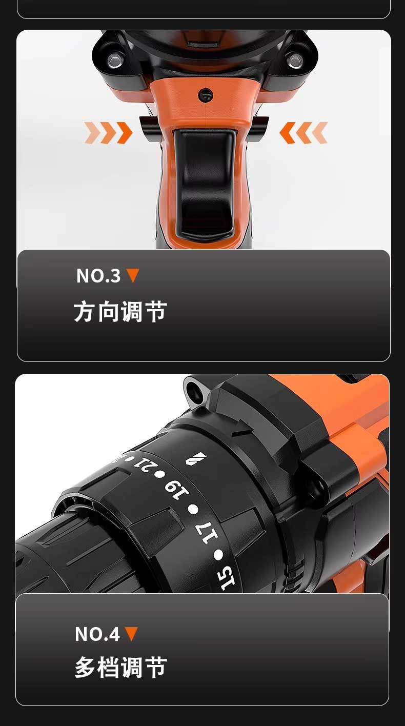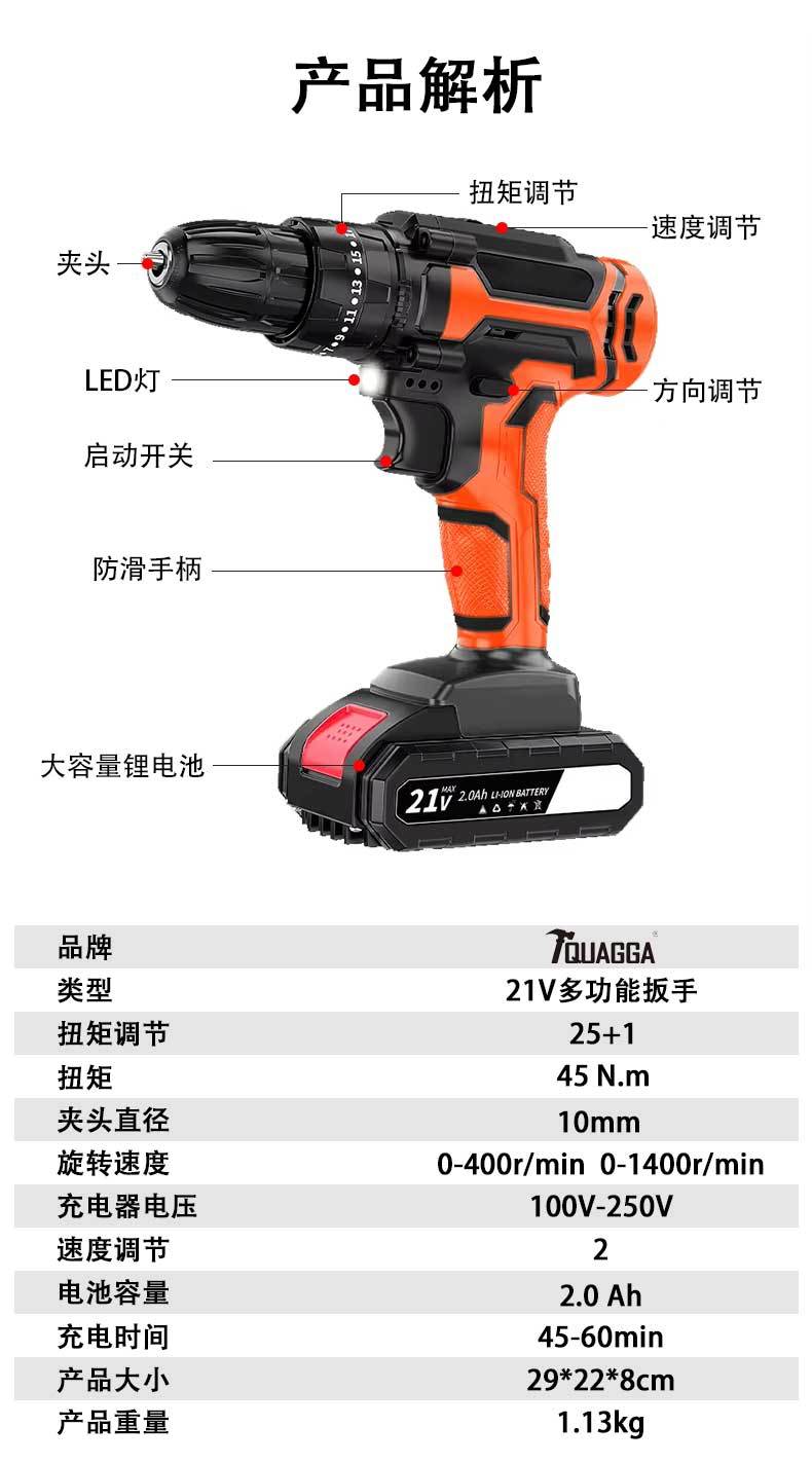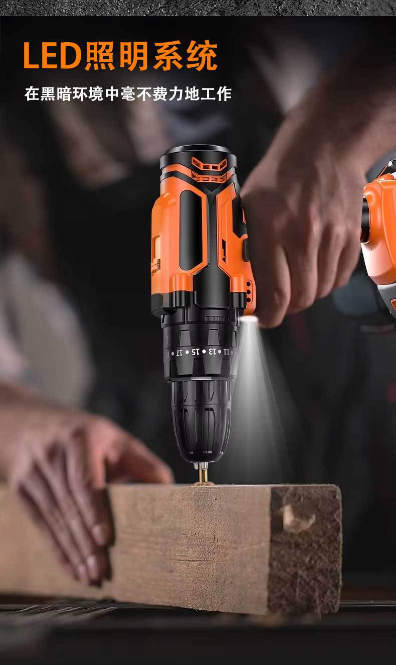 Taladro de Mano Recargable 21V Velocidad Ajustable Taladro de Impacto Juego de Herramientas Eléctricas Destornillador Eléctrico Doméstico