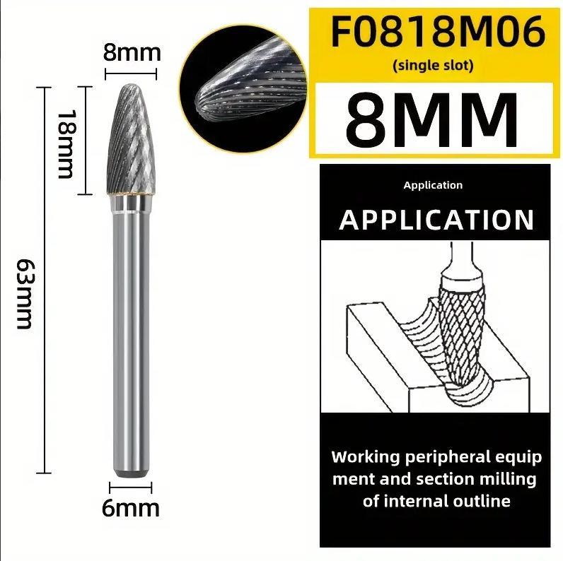 Herramienta de rectificado para carpintería tipo F cabezal de rectificado eléctrico 6 mm traje fresa carburo lima rotativa carburo cabezal de rectificado de acero de tungsteno