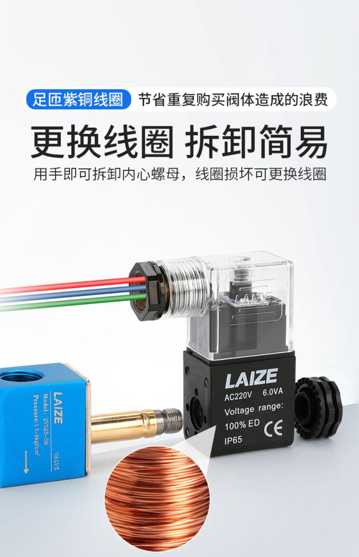 Válvula neumática 2V025-08, electroválvula de dos posiciones y dos vías, una entrada y una salida, bobina 220, 12 V, válvula inversora de control 24 V