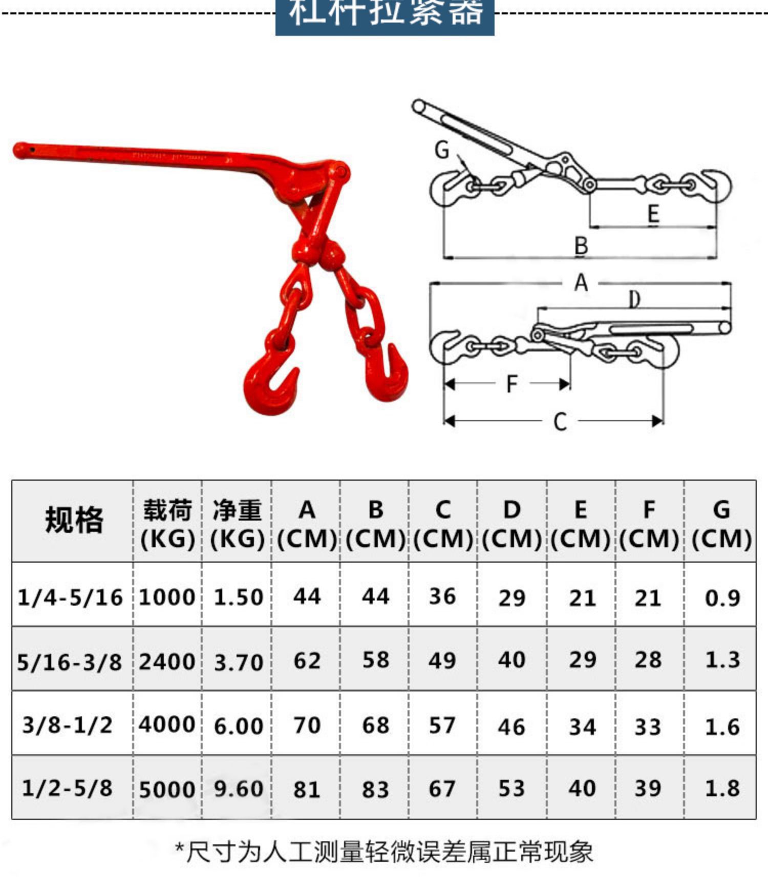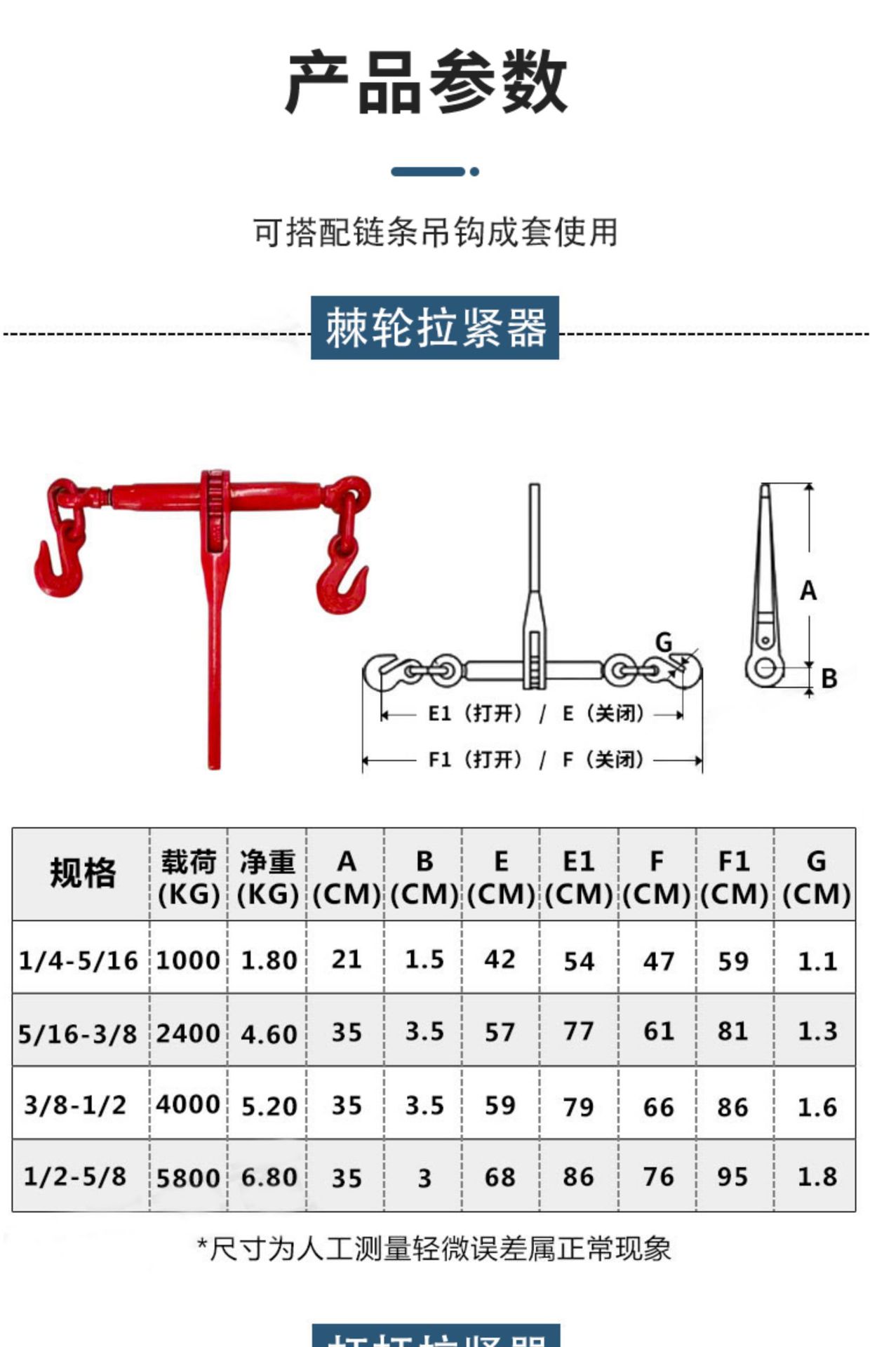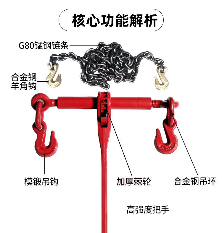 Tensor manual de carraca con gancho y tensor sin gancho Sujetador Tensor de cuerda Gancho doble Camión Juego completo de apriete de cadena de hierro