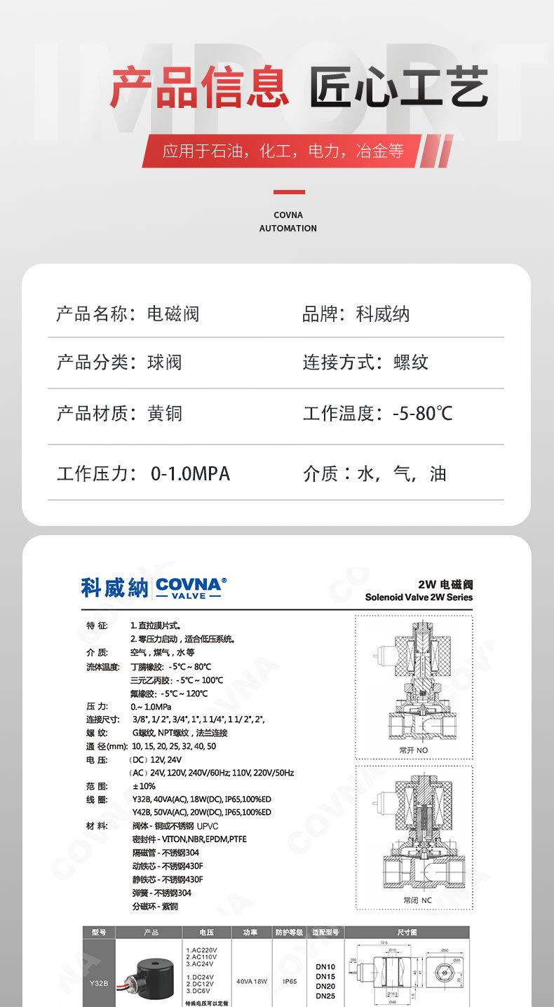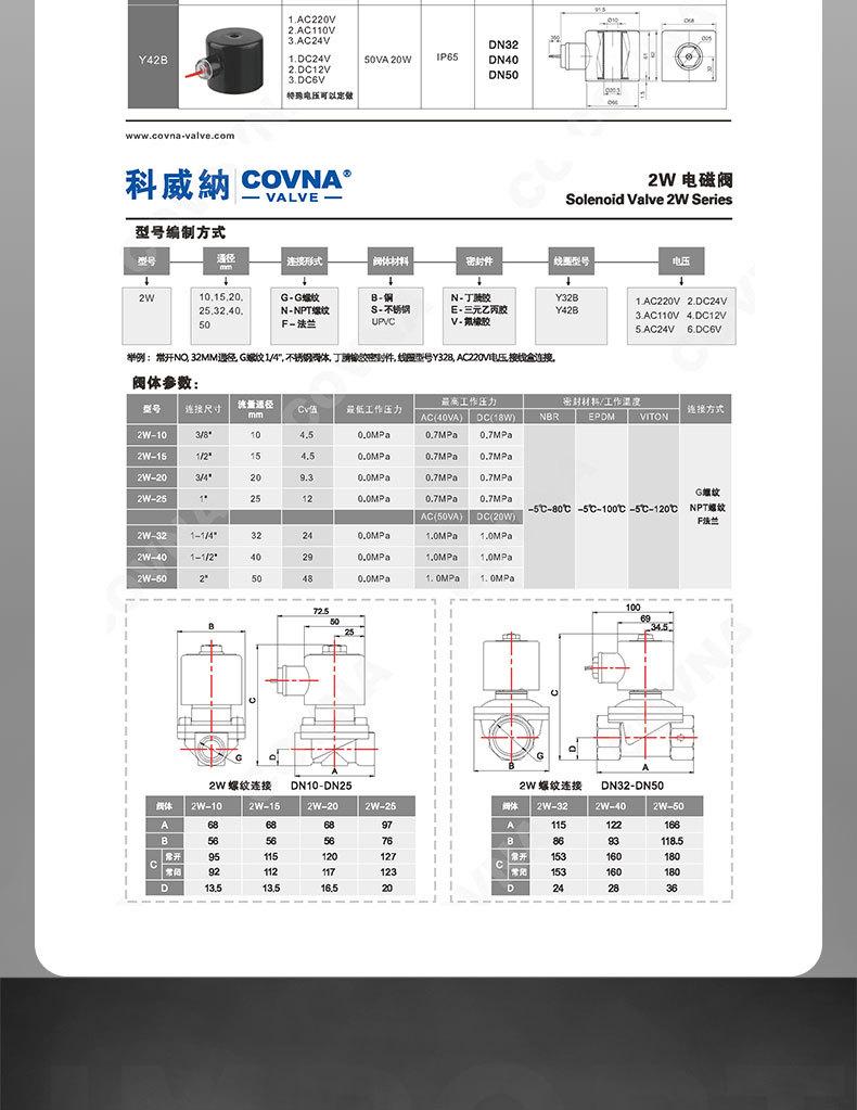 Válvula Solenoide Covna Serie 2W21 Dos Posiciones Dos Vías Acción Directa Diafragma Válvula Solenoide Normalmente Cerrada y Normalmente Abierta