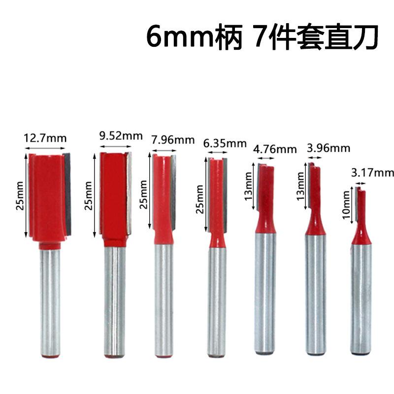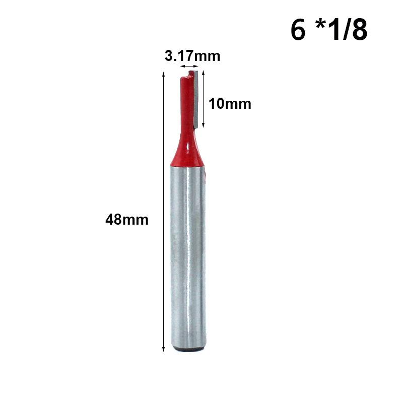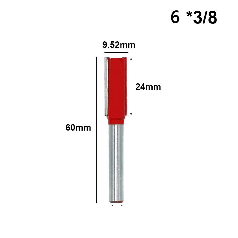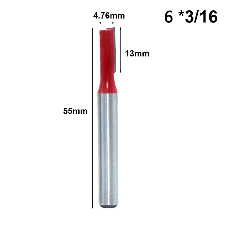 Los mangos de las fresas para carpintería son: 3 mm, 6 mm, 1/4" (6,35 mm), 8 mm, 12 mm, 1/2" (12,7 mm)