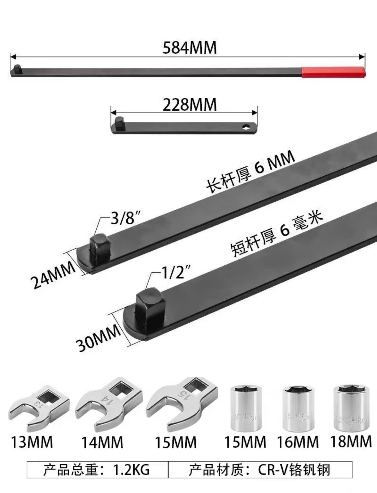 La llave de ajuste del tensor de correa de polea loca de coche de 8 piezas es muy larga