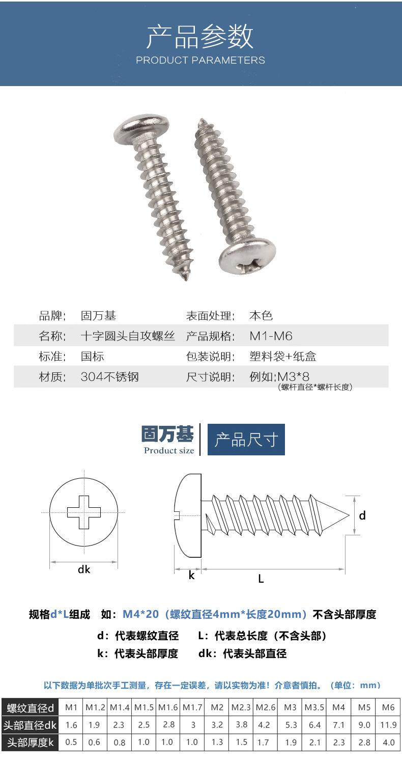Tornillos Autorroscantes de Acero Inoxidable 304 Pa de Cabeza Redonda Phillips Personalizados Tornillos Autorroscantes de Cabeza Pan Fabricantes Mayoristas de Tornillos