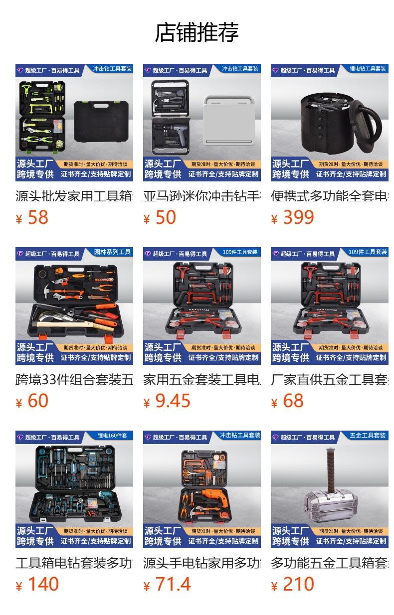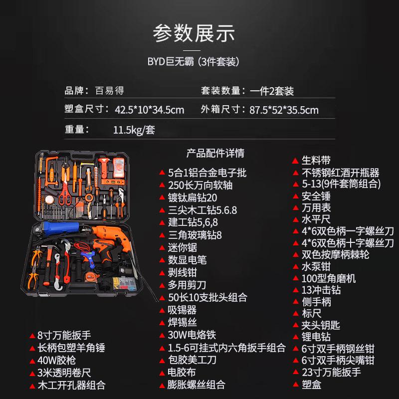 Juego de herramientas de hardware personalizado para el hogar, manual, electricista, caja de reparación de automóviles, juego combinado de taladro eléctrico de litio y amoladora angular