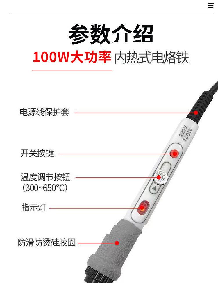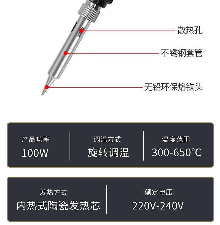 Cautín eléctrico de alta potencia de 100 W con interruptor, cautín de temperatura constante de grado industrial, lápiz de soldadura eléctrica, juego de herramientas de hierro eléctrico Luo, venta al por mayor