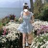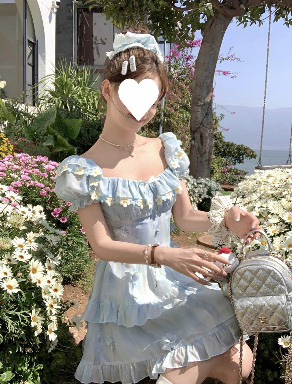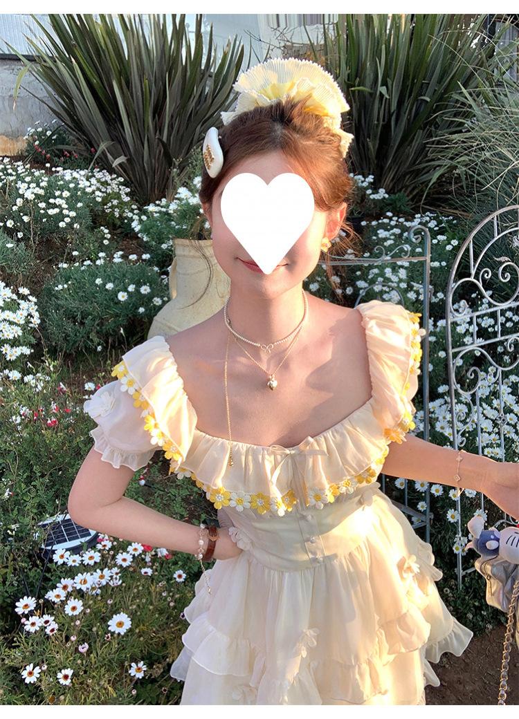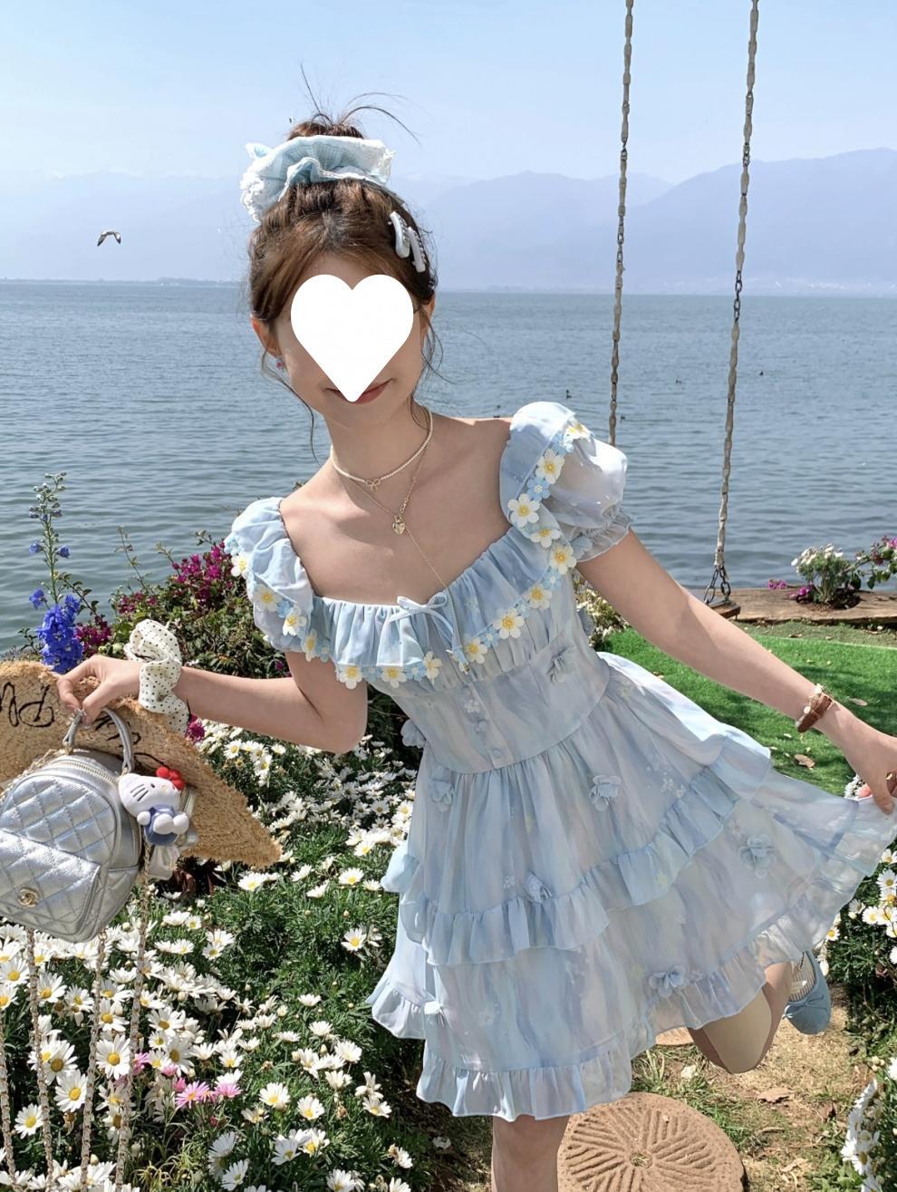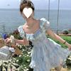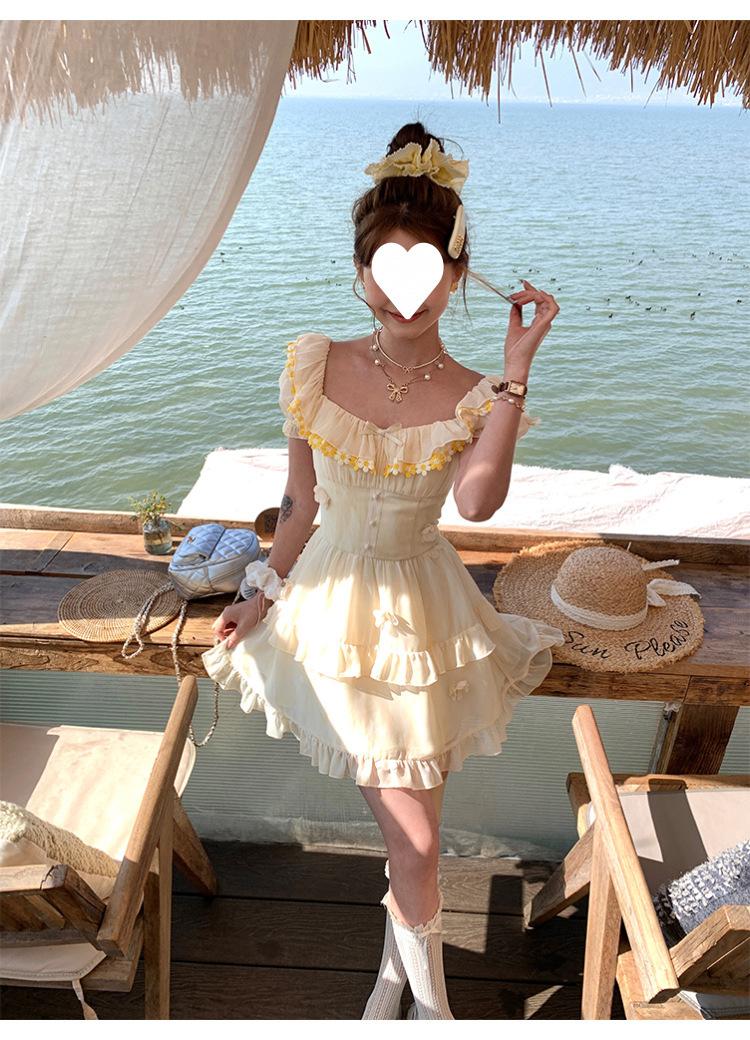 Compra Vestido Midi de Cuello Cuadrado, Manga Corta con Volantes Pequeños, Cintura Chifón, Verano para Mujer, Falda Retro Francesa al por mayor en Joom.pro