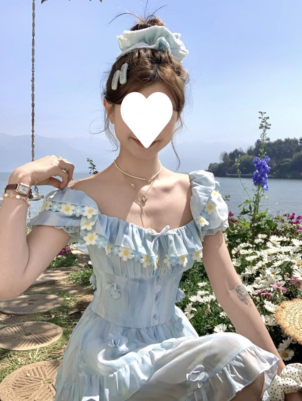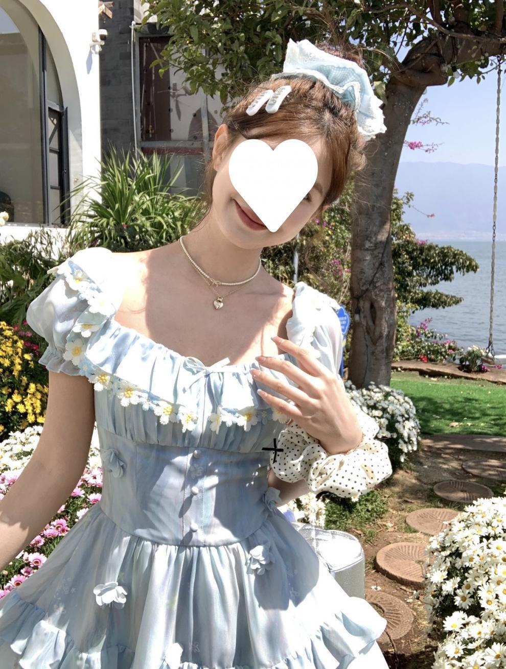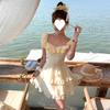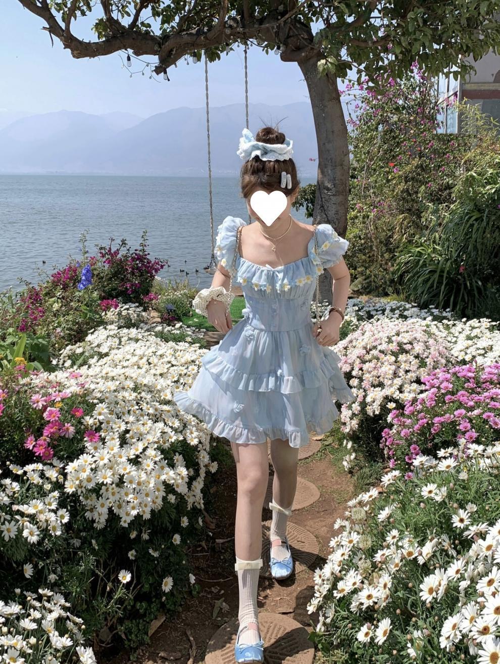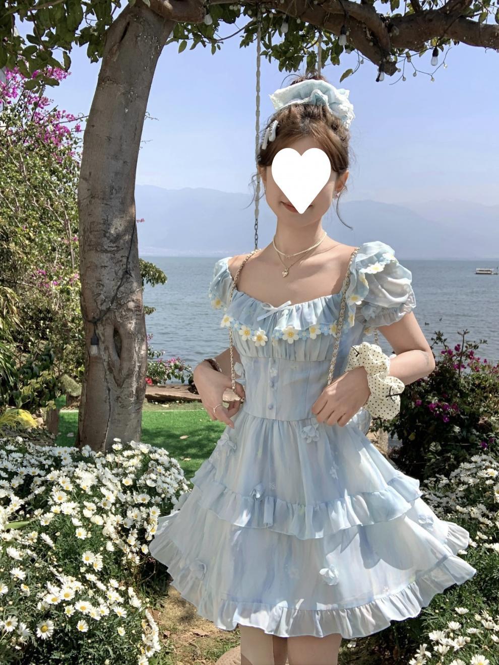 Compra Vestido Midi de Cuello Cuadrado, Manga Corta con Volantes Pequeños, Cintura Chifón, Verano para Mujer, Falda Retro Francesa al por mayor en Joom.pro