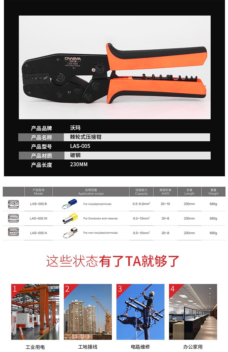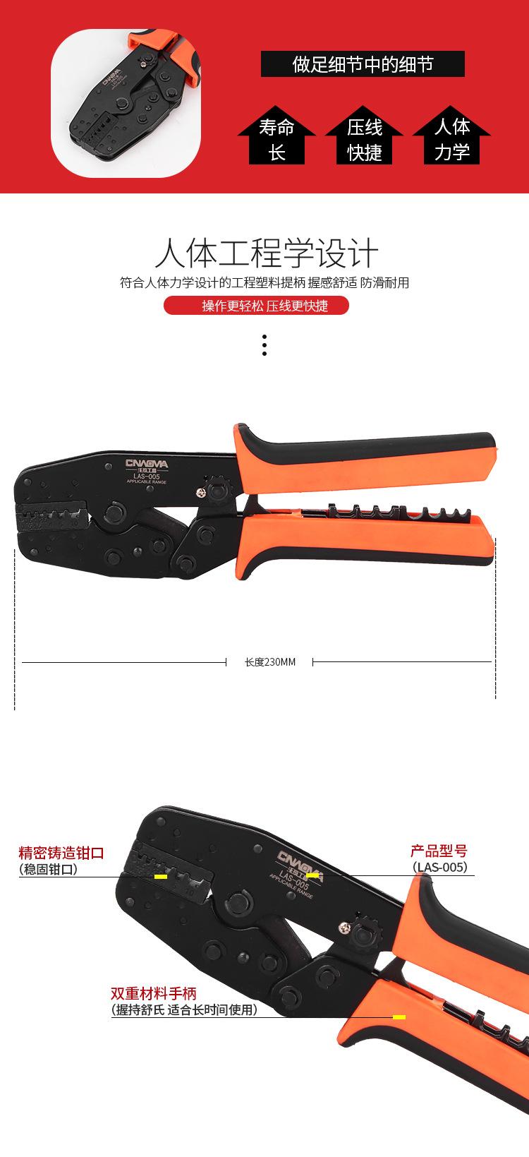 Procesamiento de alicates de crimpado de terminales de prensado en frío tipo carraca personalizados LAS-005 terminal cable largo alicates de crimpado multifunción