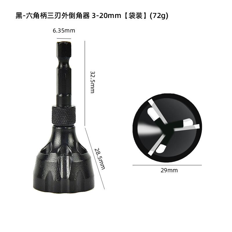 Black type a - hexagonal handle three-blade external chamfer 3-20mm [bag] 72g