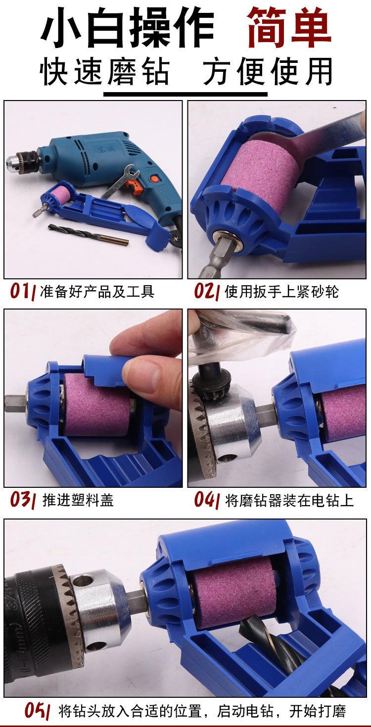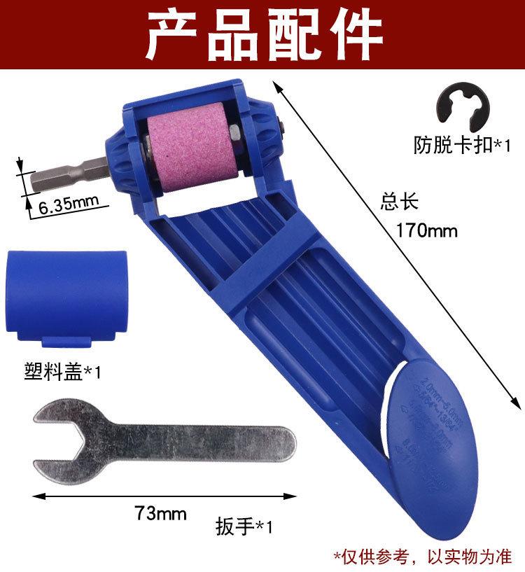 Drill sharpener blue + accessories, Drill sharpener orange + accessories, Single grindstone, Single wrench, Si...