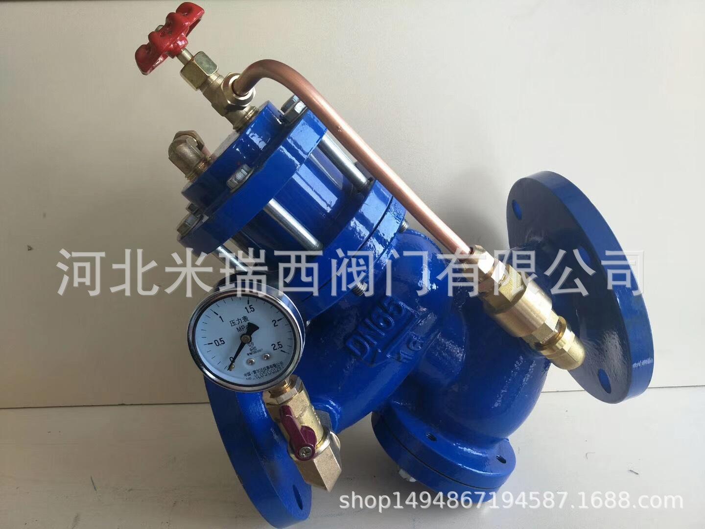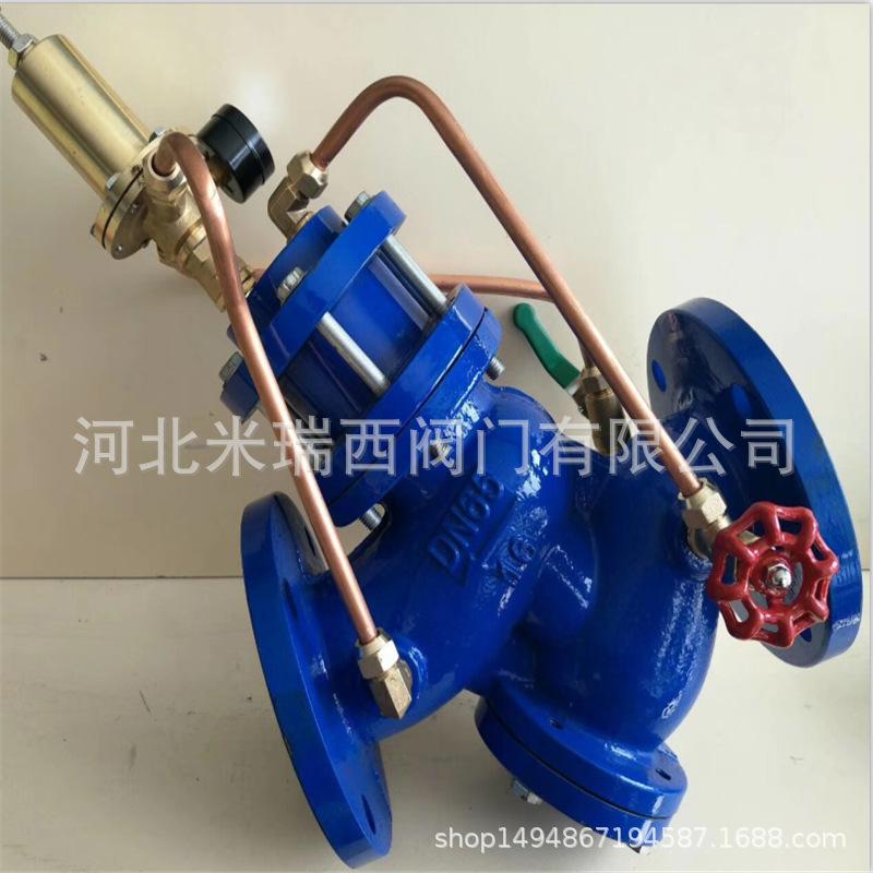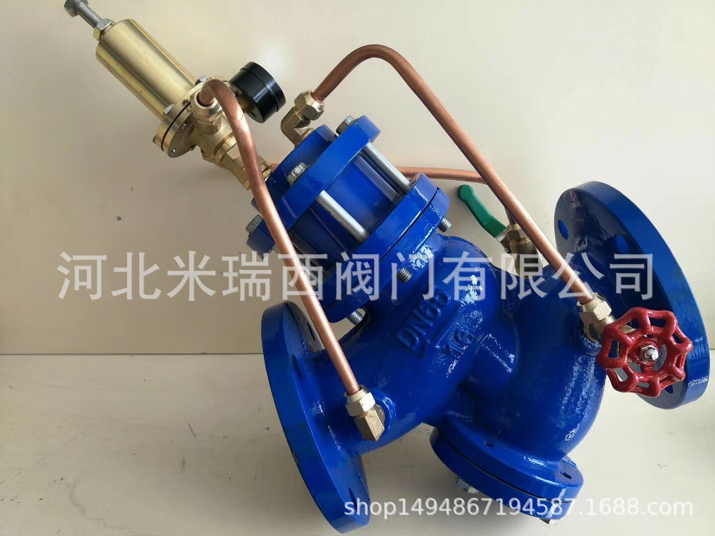 Las válvulas de control hidráulico son de dos tipos, tipo diafragma y tipo pistón, y los componentes principales consisten en una válvula principal y sus conductos asociados, válvulas piloto, válvulas de aguja, válvulas de bola y manómetros, etc. Utiliza la diferencia de presión aguas arriba y aguas abajo como potencia, y es controlada por la válvula piloto. Cuando el agua a presión en la cámara de control por encima del diafragma (pistón) se descarga a la atmósfera o al área de baja presión aguas abajo, el valor de presión que actúa en la parte inferior del disco de la válvula y debajo del diafragma es mayor que el valor de presión por encima, por lo que empuja el disco de la válvula principal a la posición totalmente abierta. Cuando la presión en la cámara de control por encima del diafragma (pistón) no puede descargarse a la atmósfera o al área de baja presión aguas abajo, el valor de presión que actúa por encima del diafragma (pistón) es mayor que el valor de presión por debajo, por lo que presionará el disco de la válvula principal a la posición totalmente cerrada. Cuando el valor de presión en la cámara de control por encima del diafragma (pistón) está entre la presión de entrada y la presión de salida, el disco de la válvula principal está en el estado de regulación, y su posición de regulación depende de la acción combinada de la válvula de aguja y la válvula piloto ajustable en el sistema de conductos. La válvula piloto ajustable puede abrir o cerrar su propio pequeño puerto de válvula según la presión de salida aguas abajo y sus cambios, cambiando así el valor de presión en la cámara de control por encima del diafragma (pistón) y controlando la posición de regulación del disco de la válvula principal.