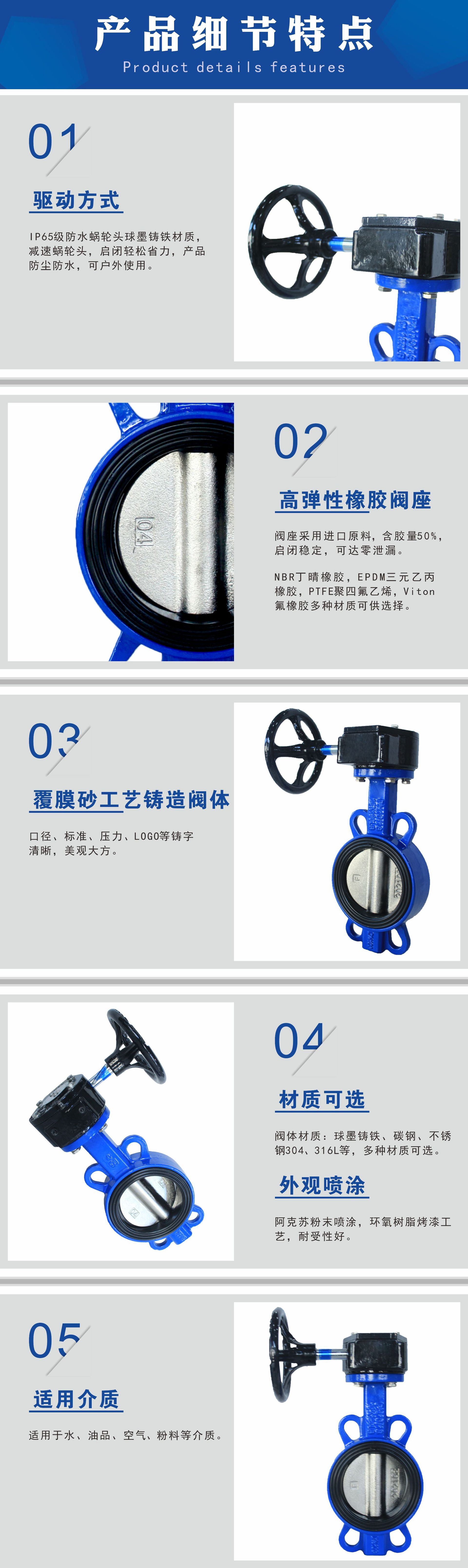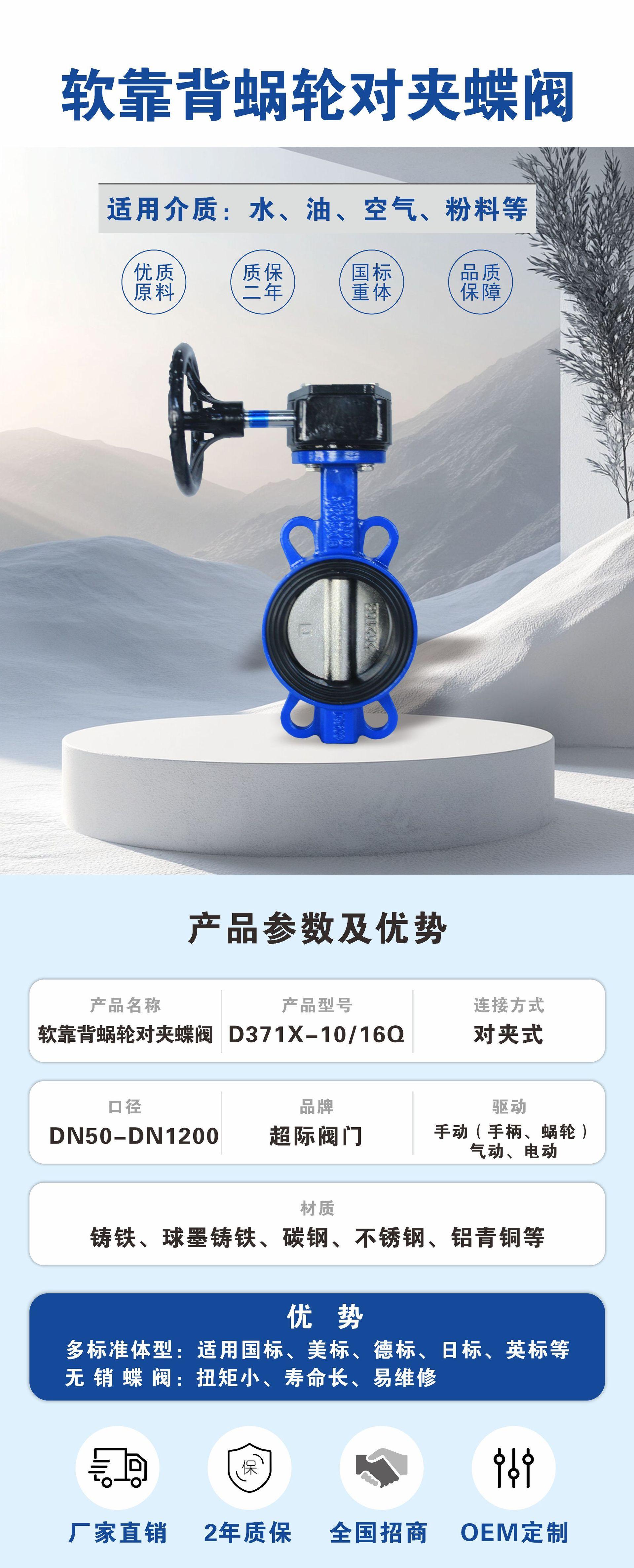 Válvula de Mariposa Manual con Engranaje Helicoidal D371X-10/16Q Hierro Dúctil Sin Pasador/Con Pasador Sello Suave Válvula de Mariposa de Línea Media