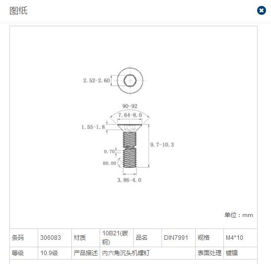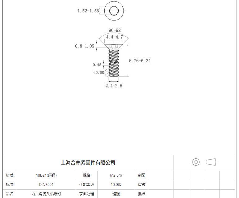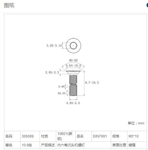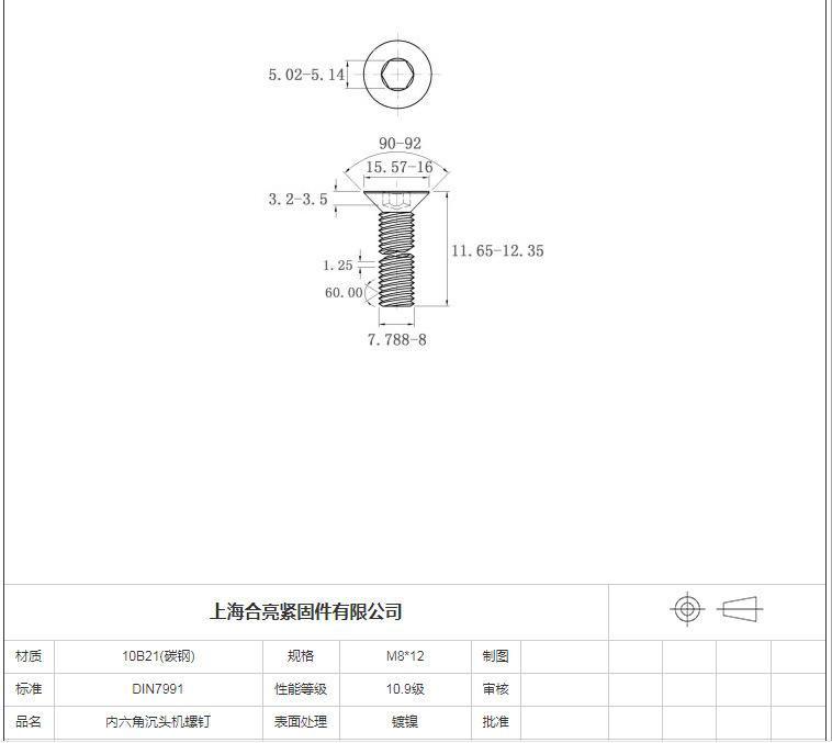 Tornillo hexagonal de cabeza avellanada de cabeza plana grado 10.9 niquelado DIN7991 tornillo de alta resistencia M2.5M3M4M5M6M8