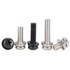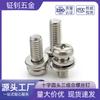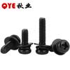 Tornillo combinado PM de tres, tornillo combinado de cabeza redonda de acero al carbono, tornillo combinado con arandela plana y arandela elástica, cabeza de cruz niquelado hierro