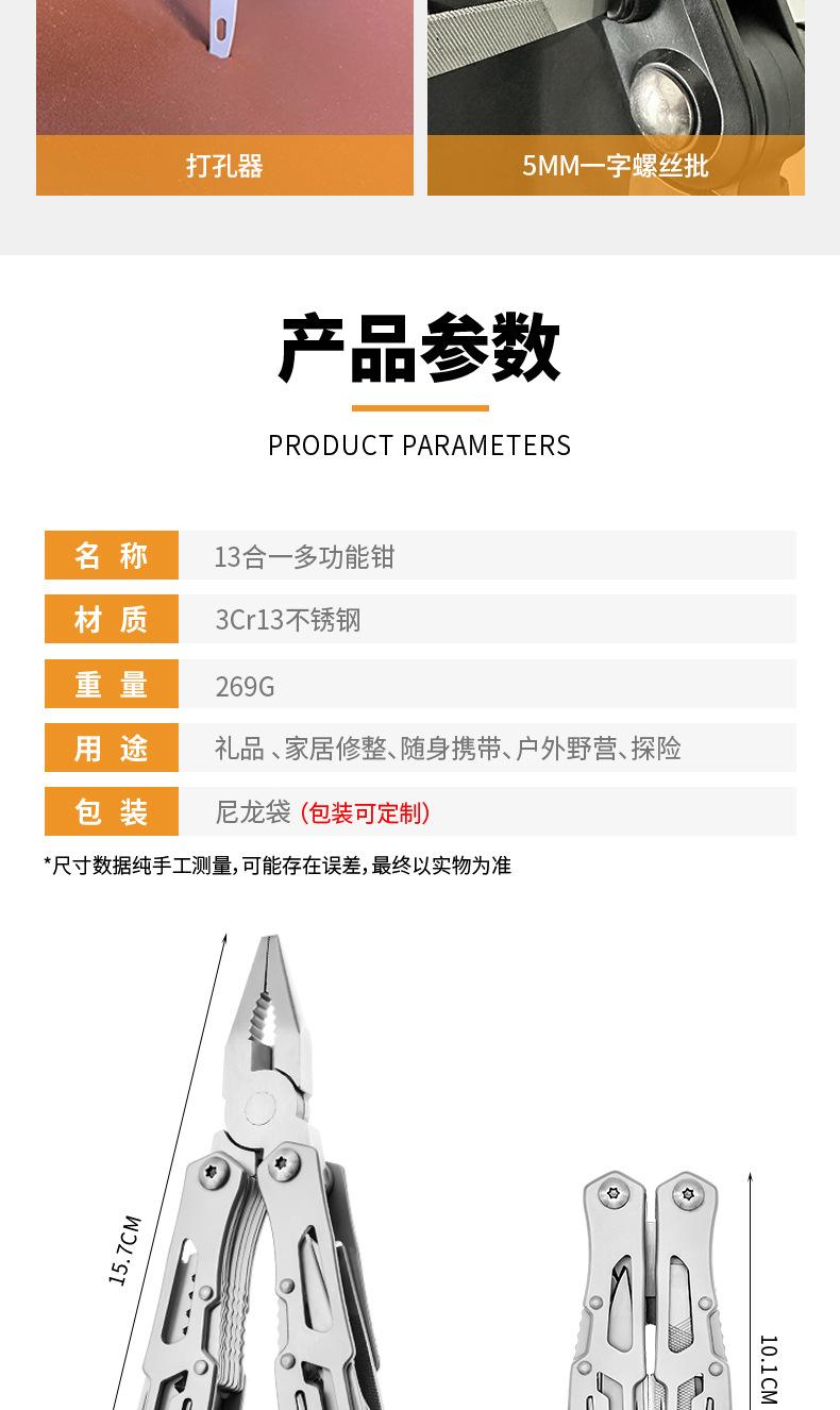 Compra Alicates Multifunción 13 en 1 de Acero Inoxidable, Alicates Plegables Multiusos, Herramientas de Reparación, Alicates para Exteriores con Punzón Fino, Cuchillo de Hueso Inferior al por mayor en Joom.pro
