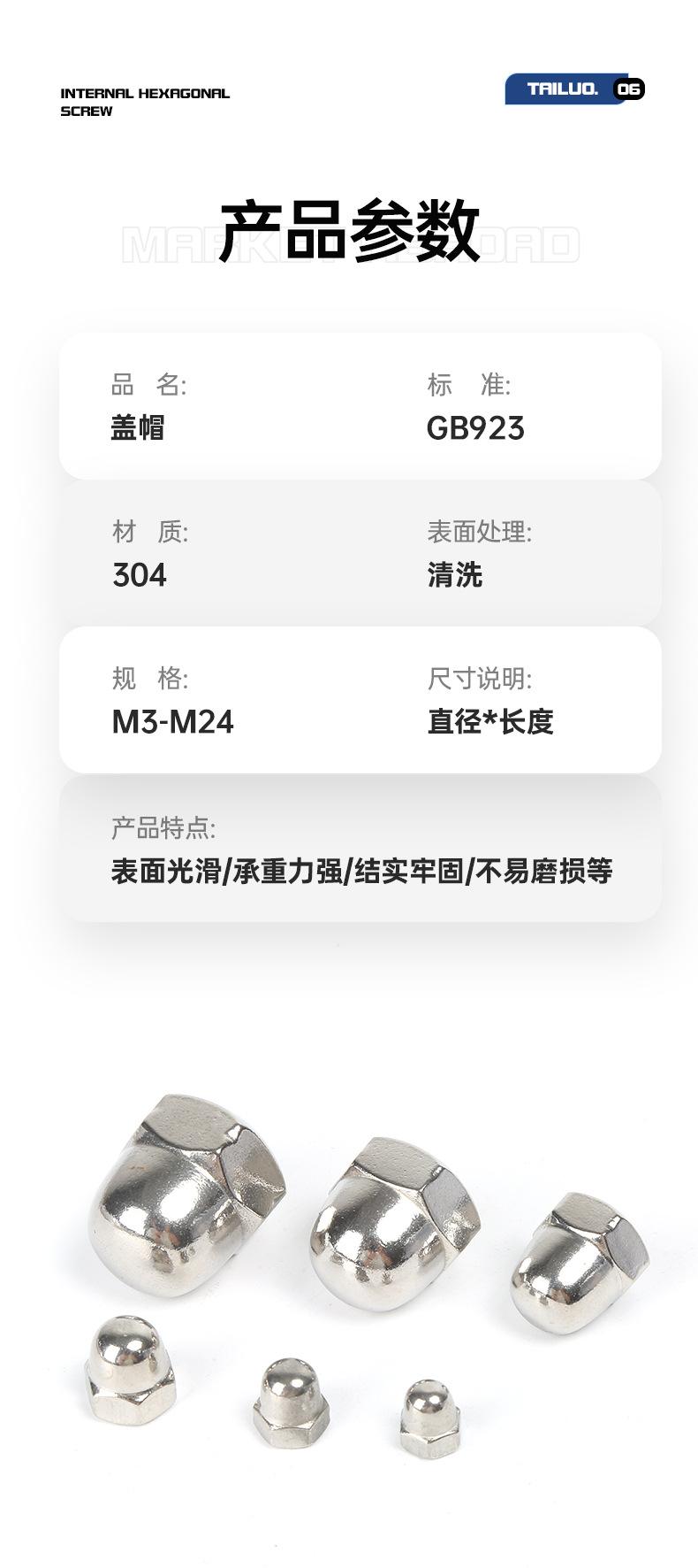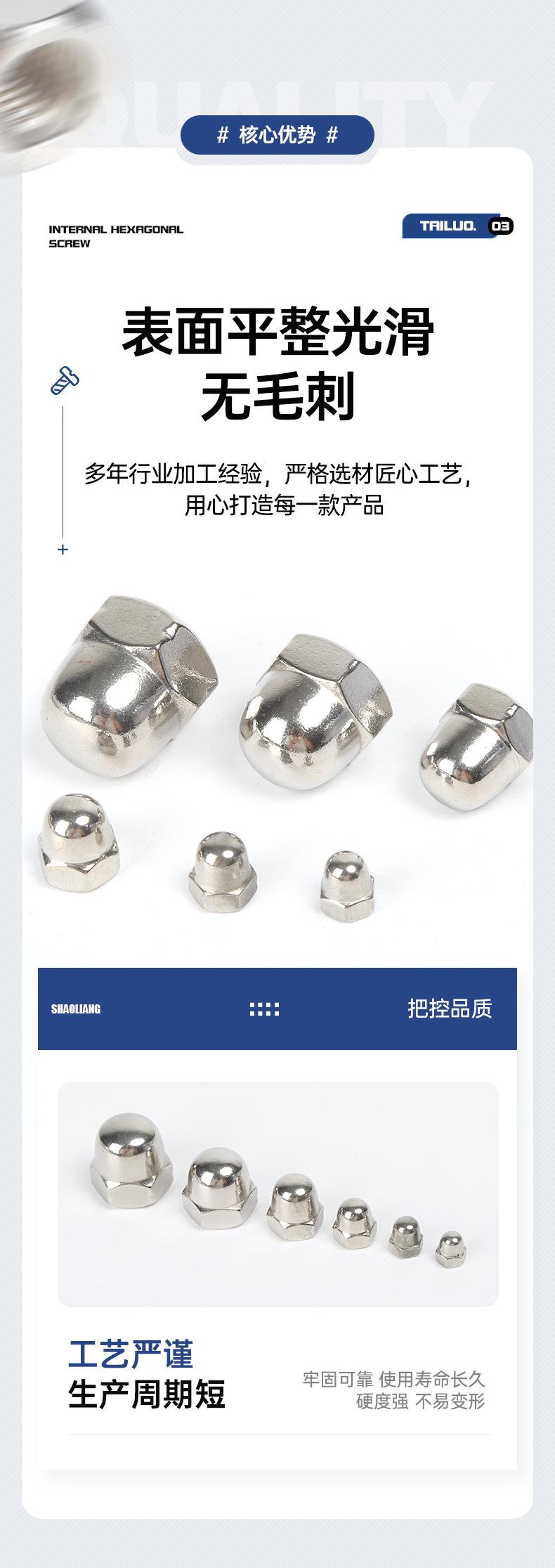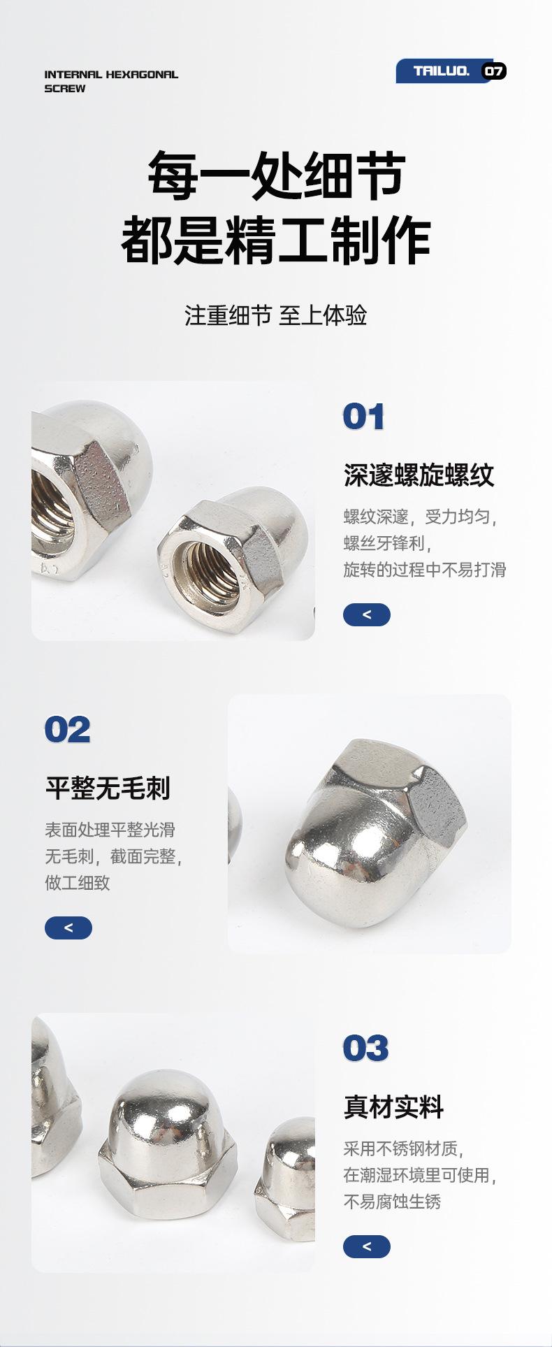 Ventas Directas de Fábrica Tuerca de Tapa Din1587 Acero Inoxidable 304 Tuerca de Tapa Hexagonal Tuerca de Tapa Tapa de Bola