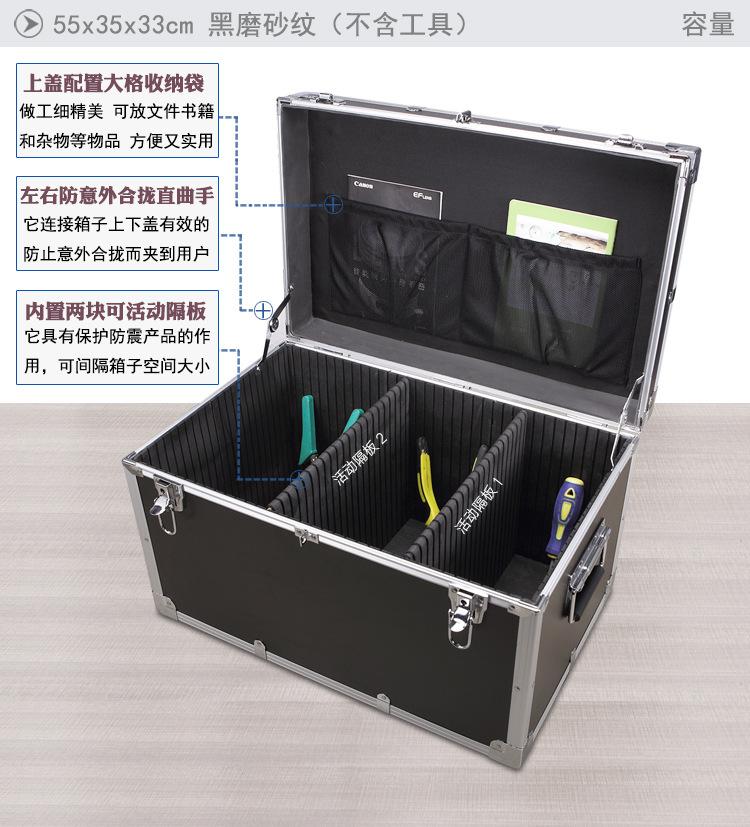 44x30x31 black box with partition shoulder strap filled with cotton, 44x30x31 black empty box with partition s...