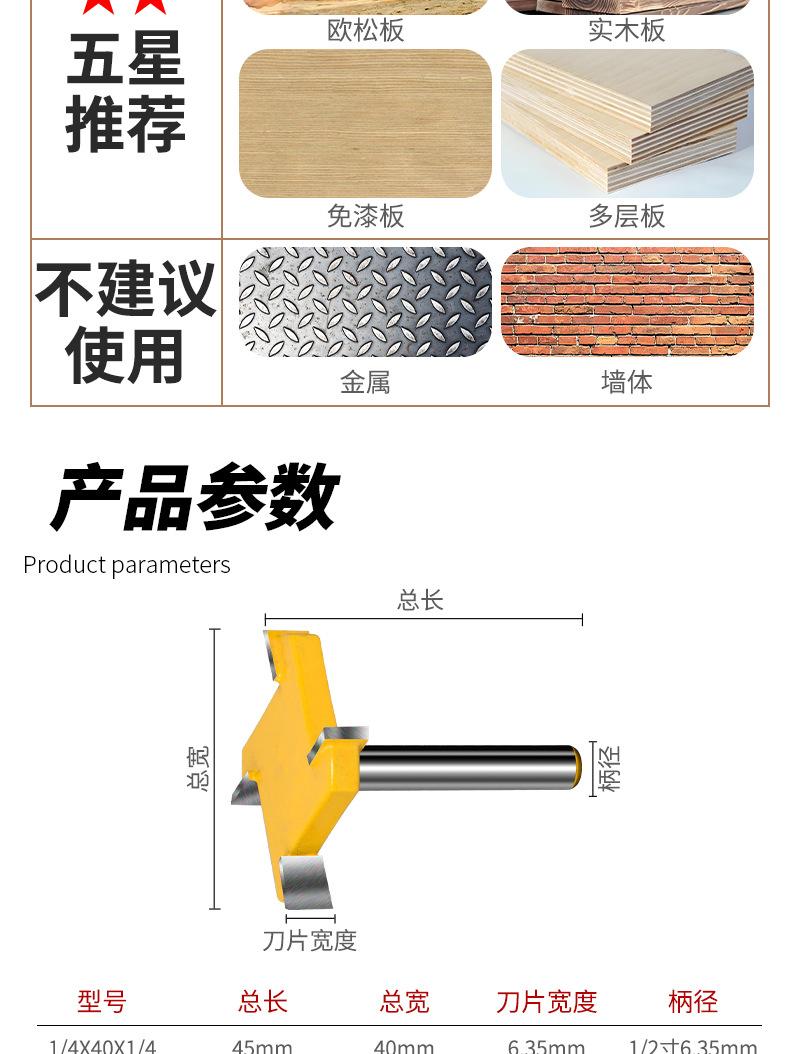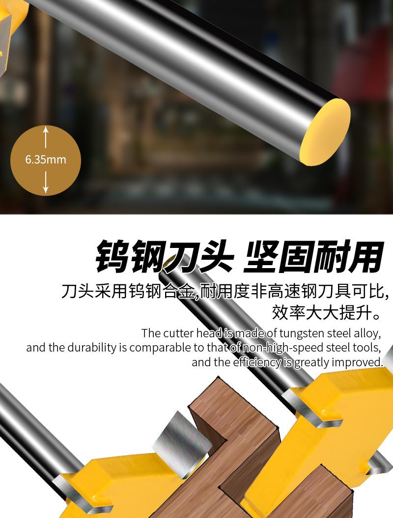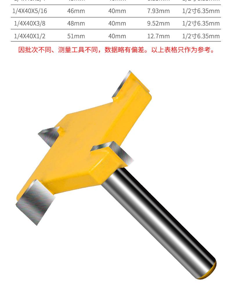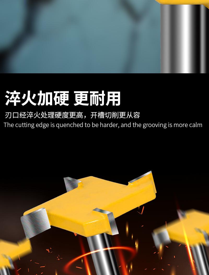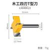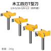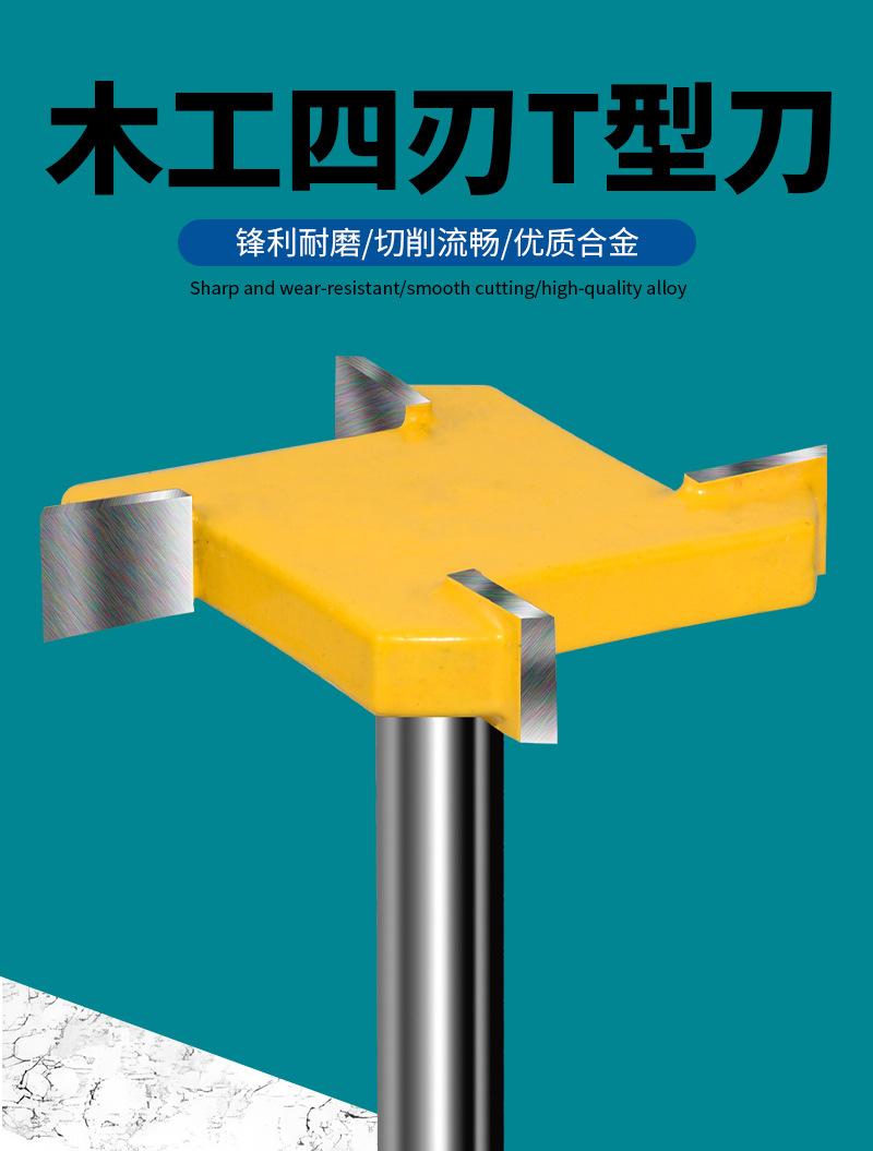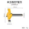 Cuchillo tipo T de cuatro hojas con mango de 1/4, cuchillo para limpieza de fondo, cuchillo para ranurado de cuatro dientes, cabezal de fresado plano, fresa para carpintería, cabezal para máquina de grabado y recorte