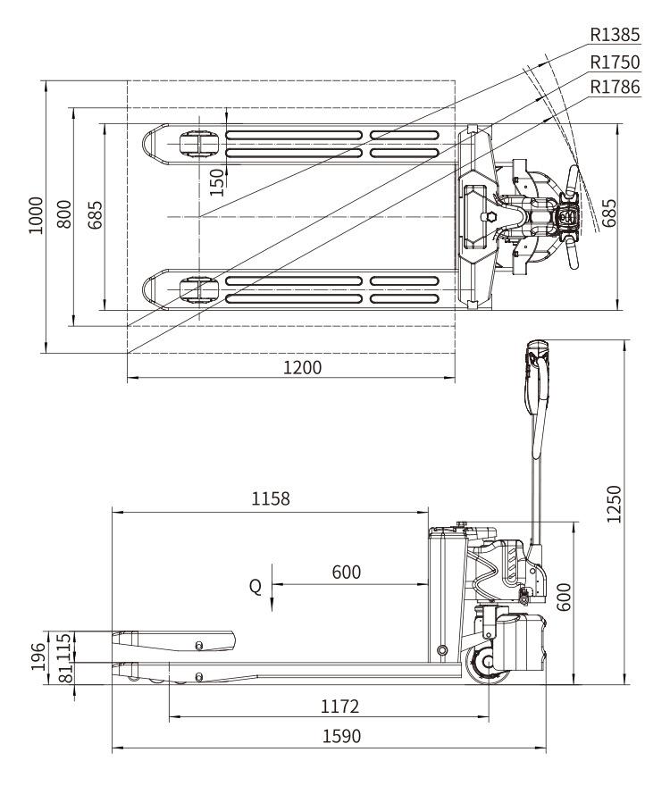 Montacargas Heli Transpaleta Eléctrica Batería de Litio Elevación Hidráulica Montacargas 1.5 Toneladas 2 Toneladas Montacargas Eléctrico