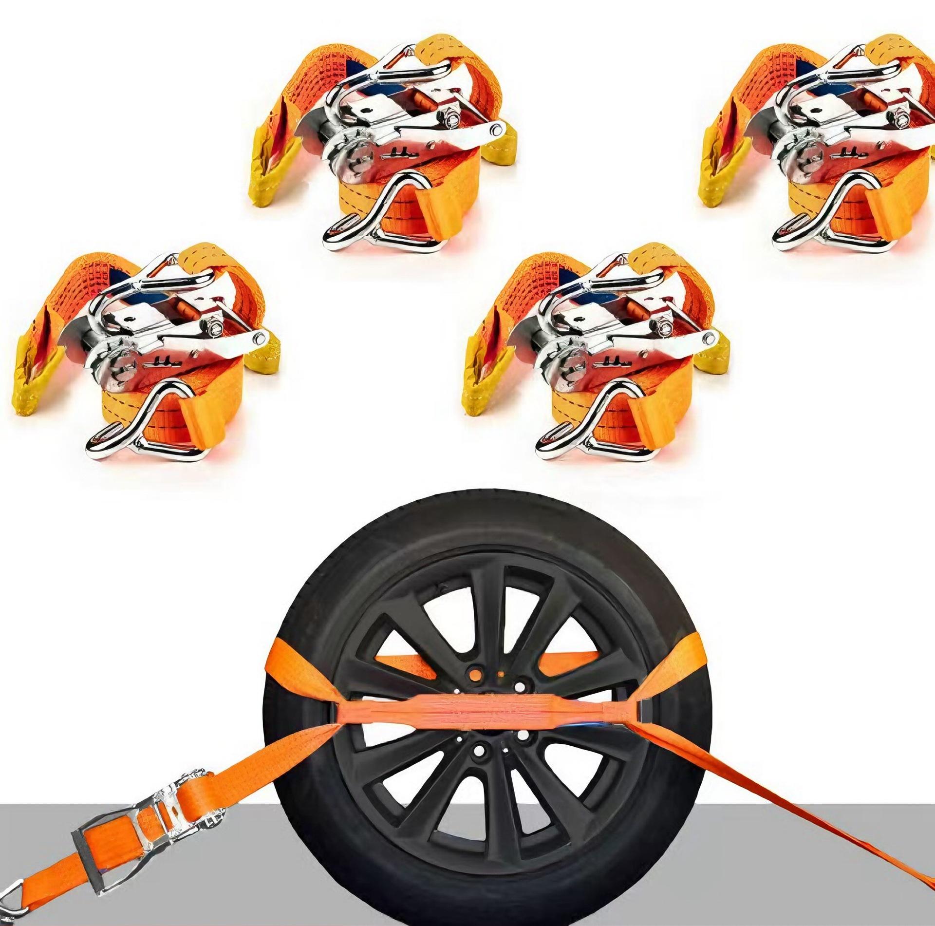 Cinta de amarre para grúa de 5t engrosada, cuerda de remolque con tensor para fijación de llantas de vehículos accidentados, vehículo de rescate con apriete