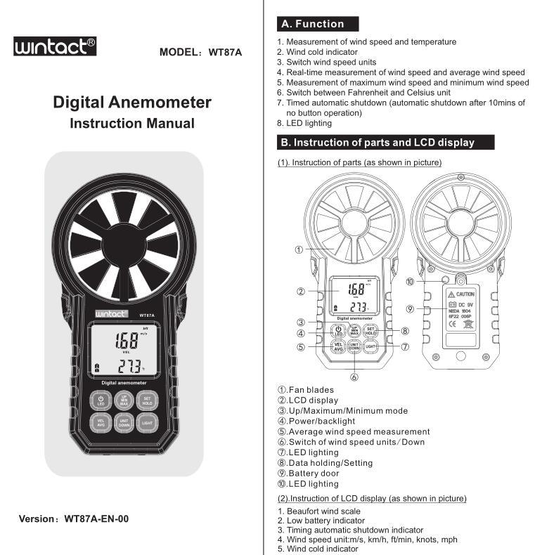 Anemómetro Digital Anemómetro de Mano Medición de Velocidad del Viento Temperatura del Viento Probador de Viento WT87A Venta al por Mayor