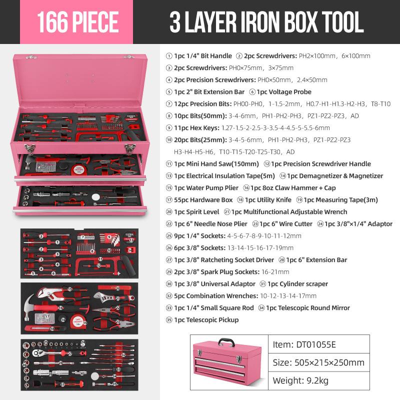Nuevo Juego de 166 Piezas de Caja de Hierro Caja de Herramientas de Tres Capas Colección de Herramientas de Ferretería Venta Caliente Transfronteriza