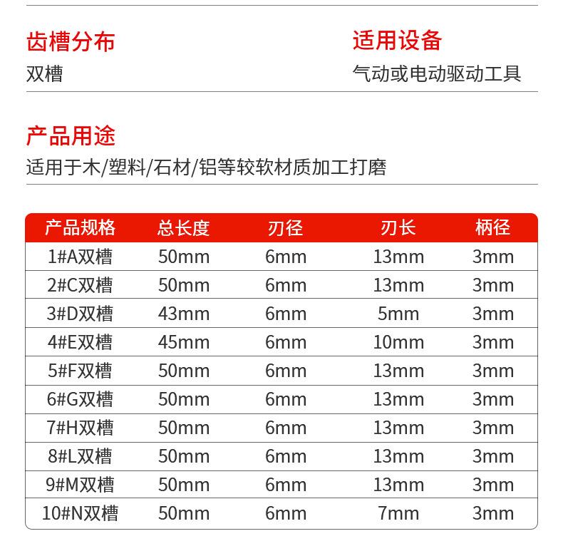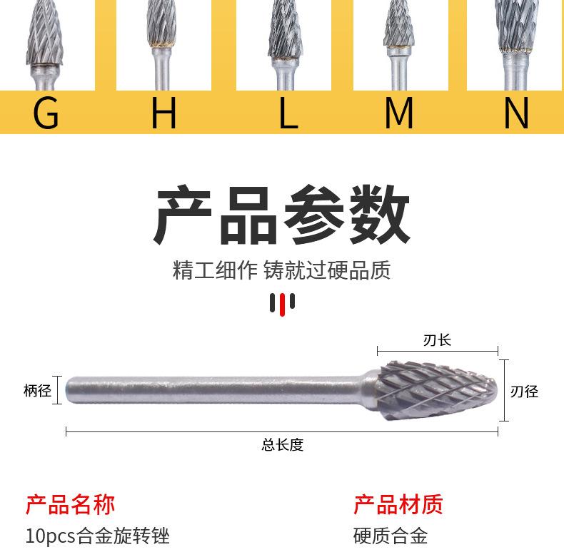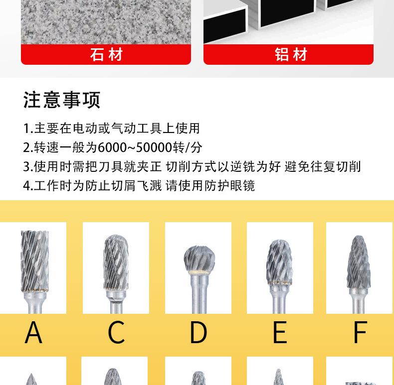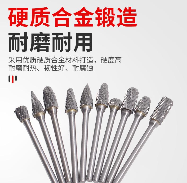 Fabricante Personalizado 10 Piezas Lima Rotativa de Carburo Herramienta de Pulido para Taladro Eléctrico 3*6mm Doble Grano Cabeza de Rectificado de Acero de Tungsteno