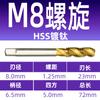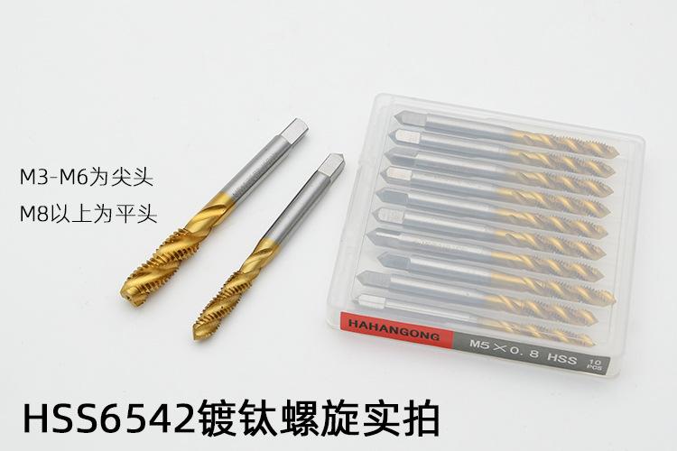 Los machos de ranura espiral son el tipo más comúnmente usado. Se utilizan diferentes ángulos de espiral según las diferentes condiciones de trabajo. Los más comunes son los de mano derecha de 15° y 42°. En general, cuanto mayor es el ángulo de espiral, mejor es el rendimiento de evacuación de viruta.