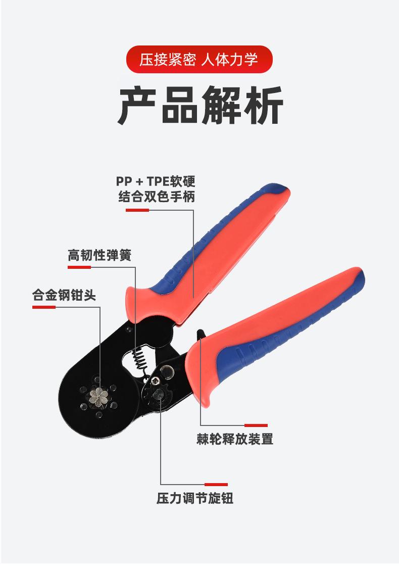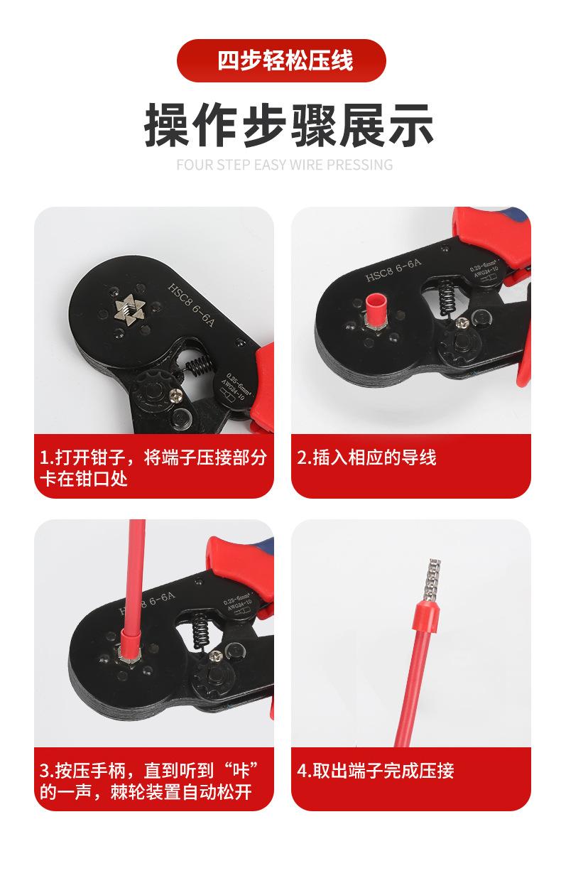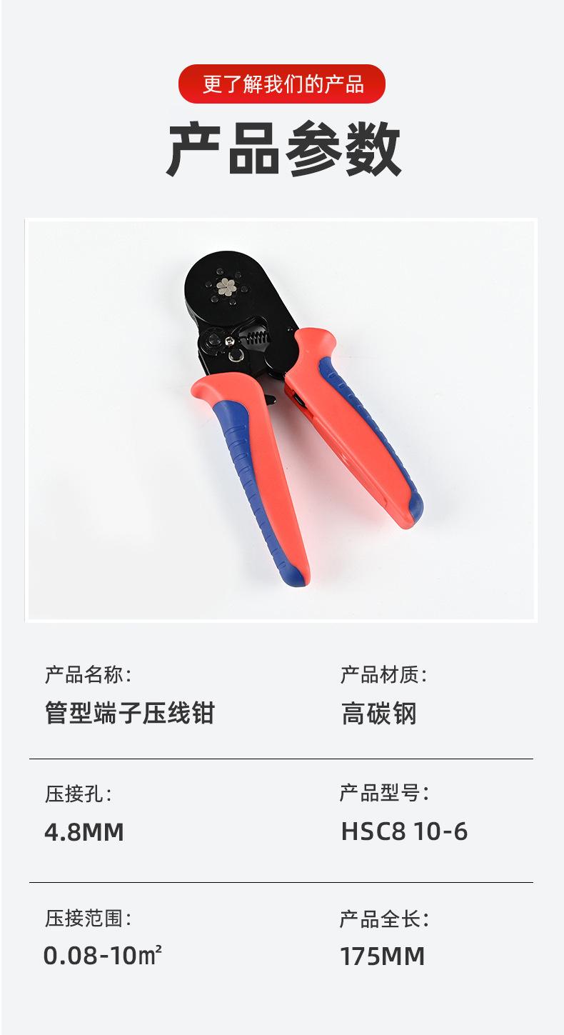 Hsc8 10-6 Pinzas para engarzar terminales de cable Electricista Especial Tipo tubo Ahorro de trabajo Pinzas para engarzar Multifuncional Hexagonal 0.08-10