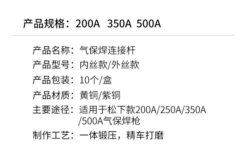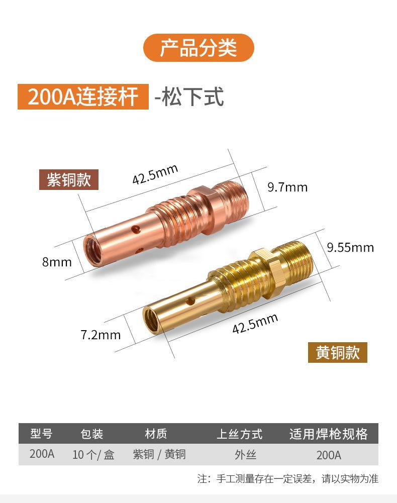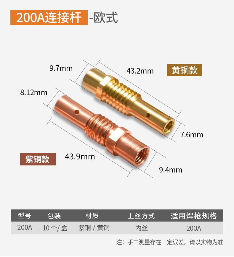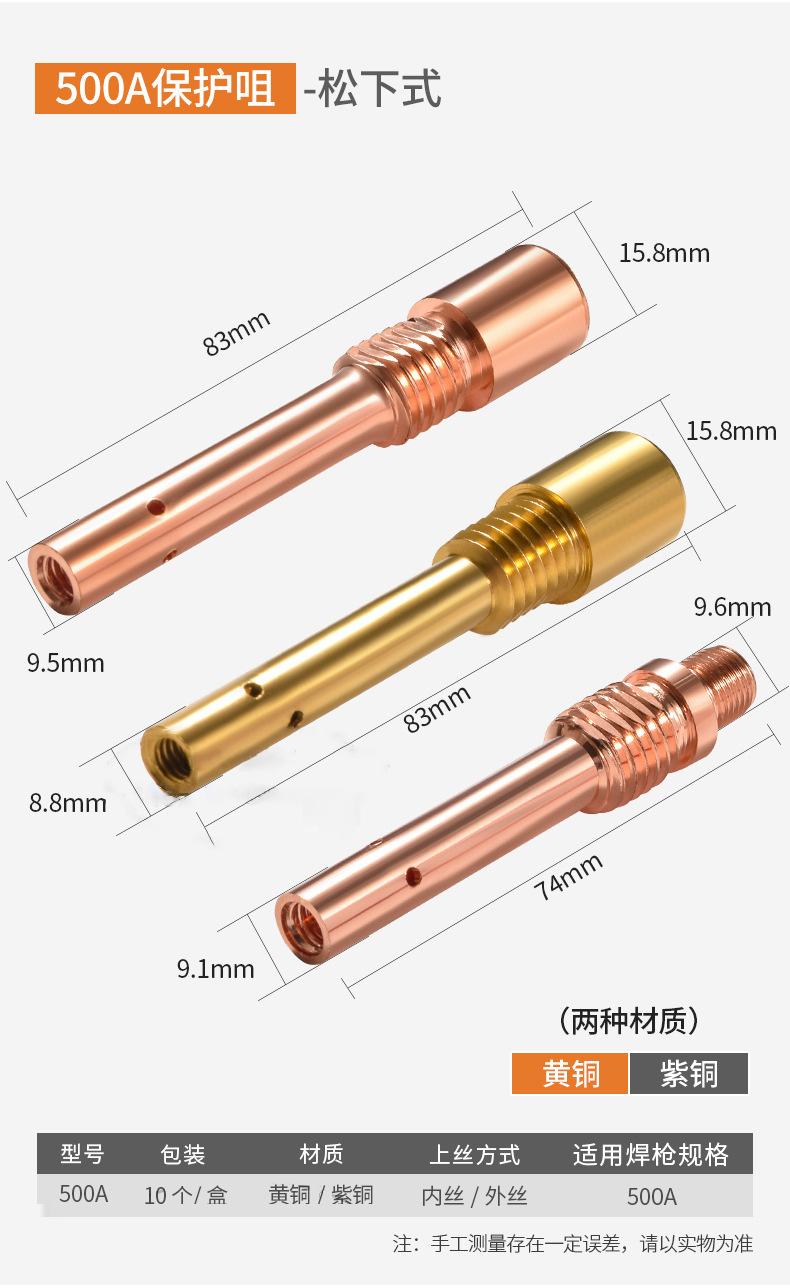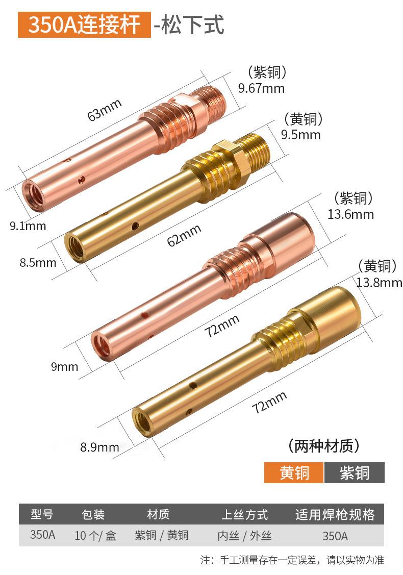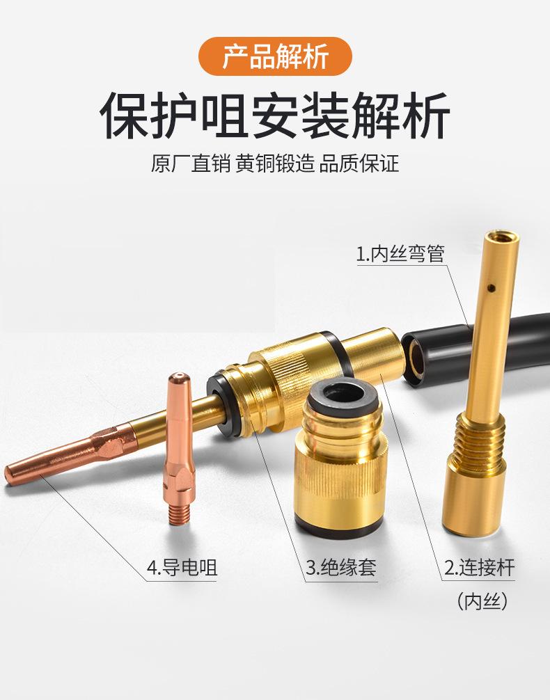 Protección Secundaria Pistola de Soldadura Gas Protegido Accesorios para Máquina de Soldadura Boquilla Conductiva Asiento 200A350A500A Alambre Interno y Externo Latón Cobre Biela