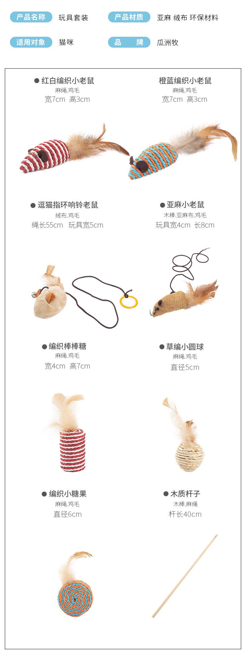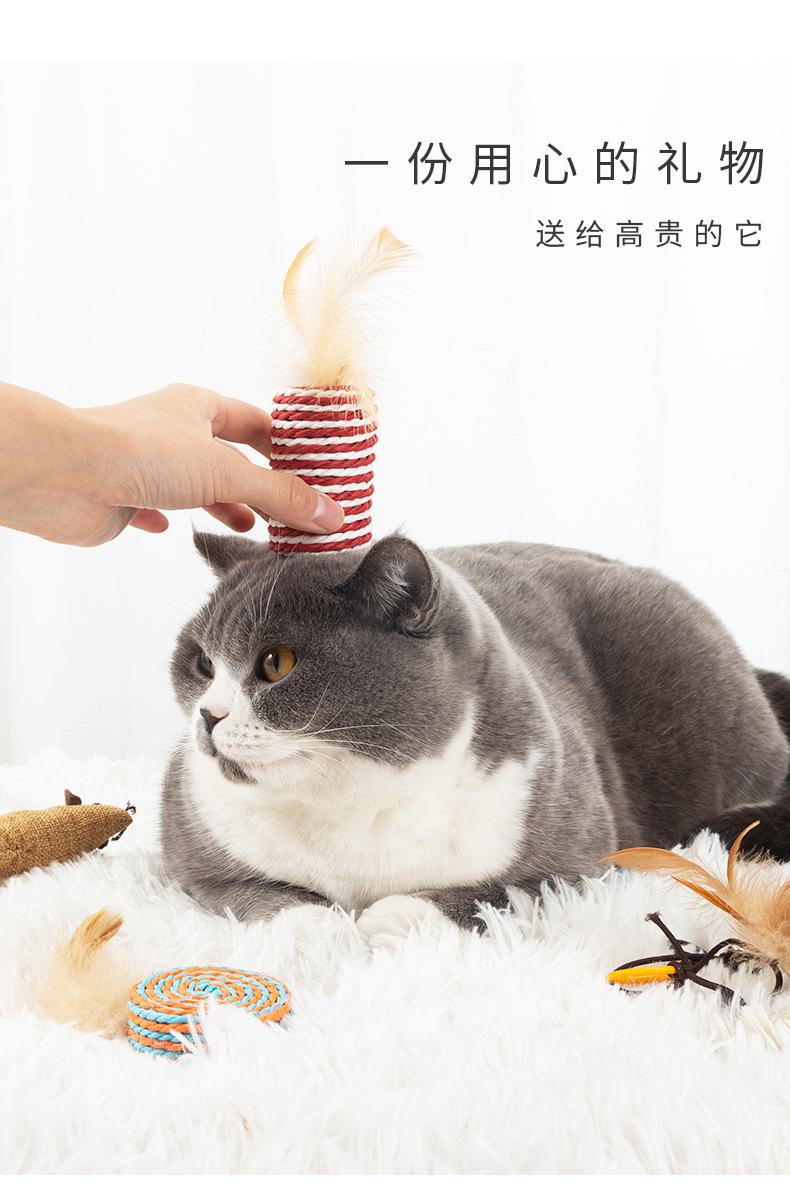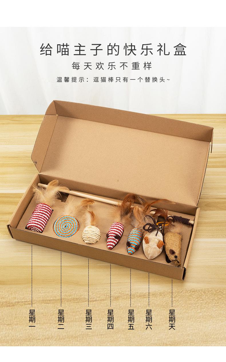 En stock juego de siete piezas palo de gato divertido suministros para juguetes para gatos auto-Hola aliviando cosas taponadas molar resistente a las mordidas traje de sisal pluma mascota