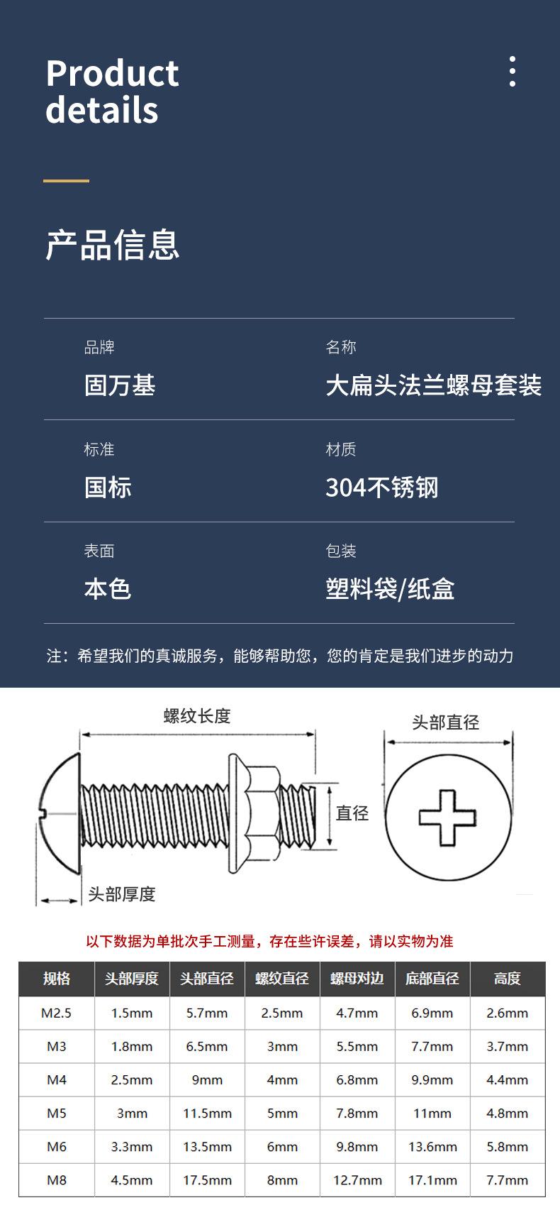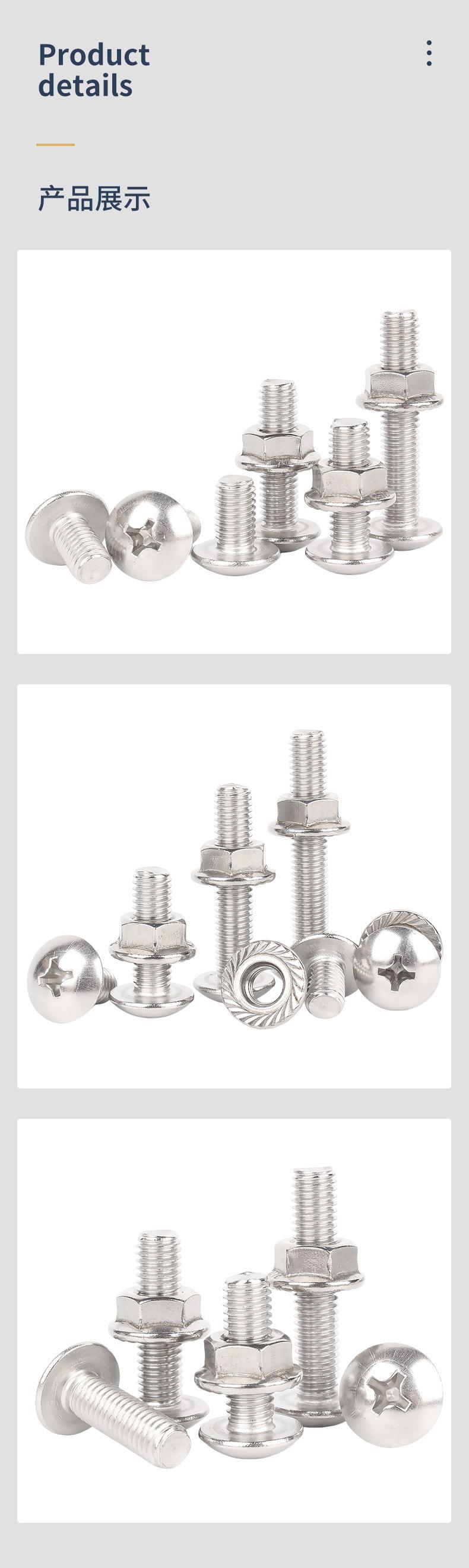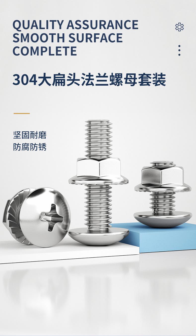 Ventas Directas de Fábrica Acero Inoxidable 304 Cruz Tornillo de Cabeza Plana Grande Juego de Tuerca con Brida Tornillo de Cabeza Paraguas Combinación de Tuerca