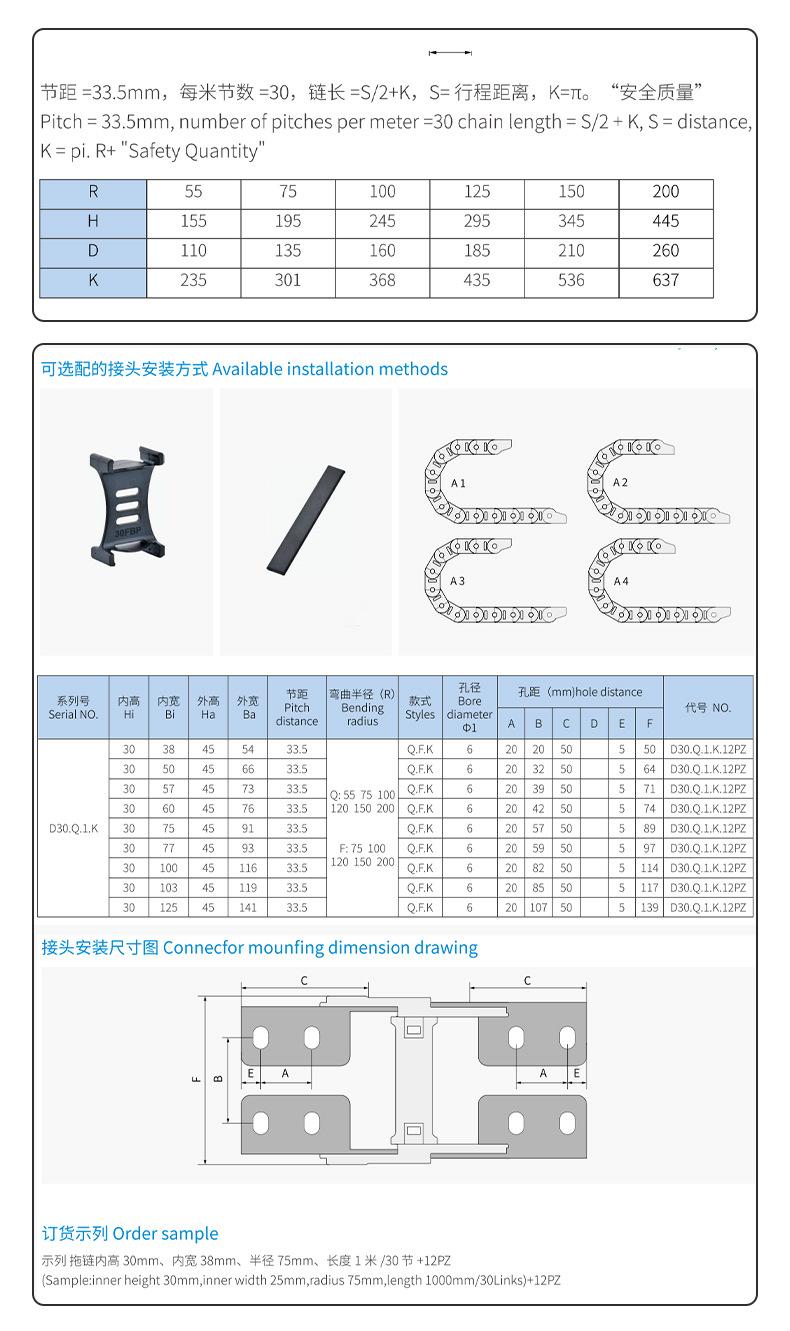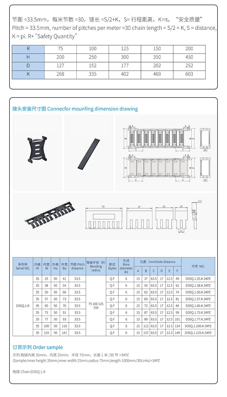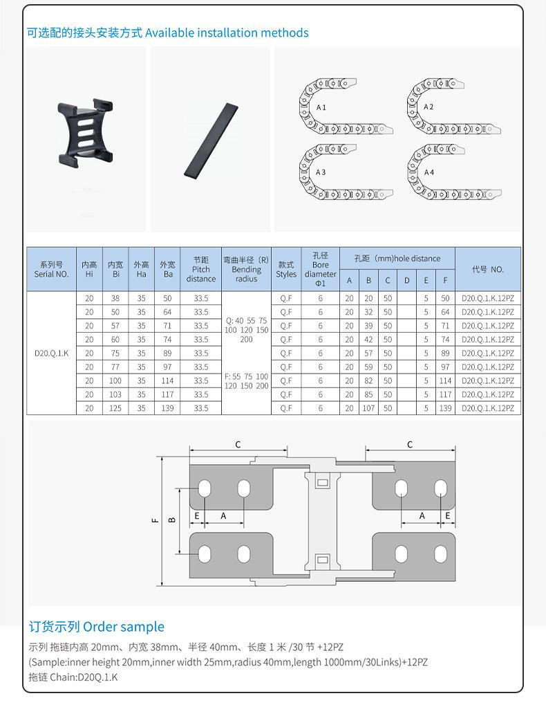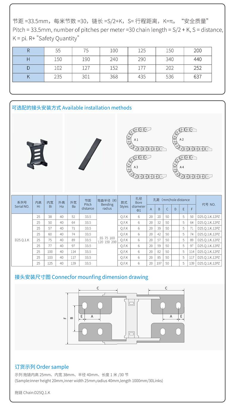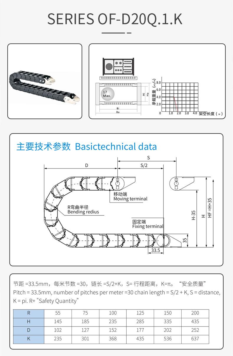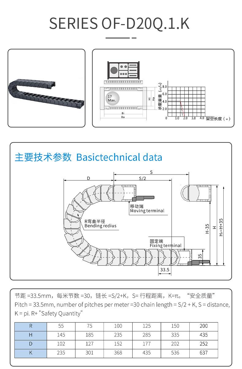 Plástico de Ingeniería Nailon Cadena Portacables Tipo Puente Herramienta Máquina Totalmente Cerrada Semicerrada Cadena Portacables Cadena Protectora