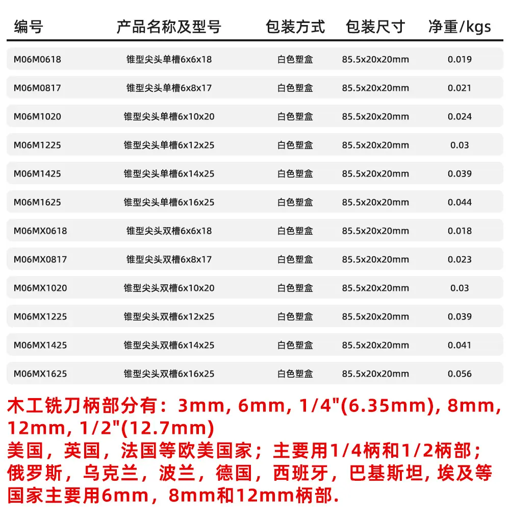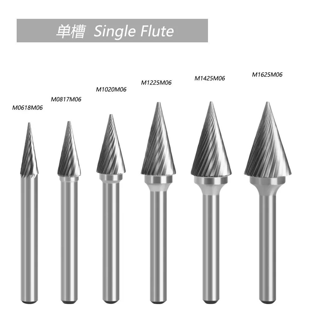 Tapered point single flute 6x6x18, Tapered point single flute 6x8x17, Tapered point single flute 6x10x20, Tape...