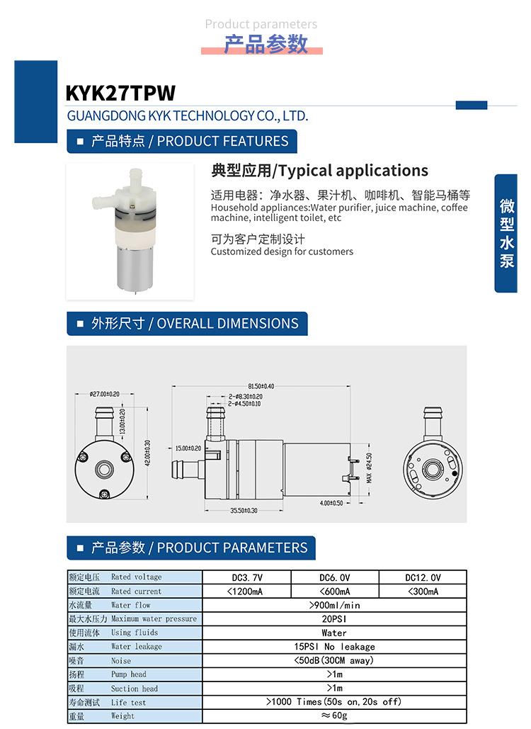 Bomba de Agua Micro 27Tpw 12V Bajo Ruido Bomba de Agua de Diafragma Dispensador de Agua Máquina de Té Grado Alimenticio Bomba de Agua CC
