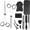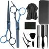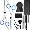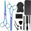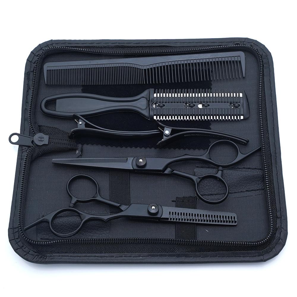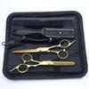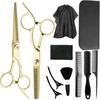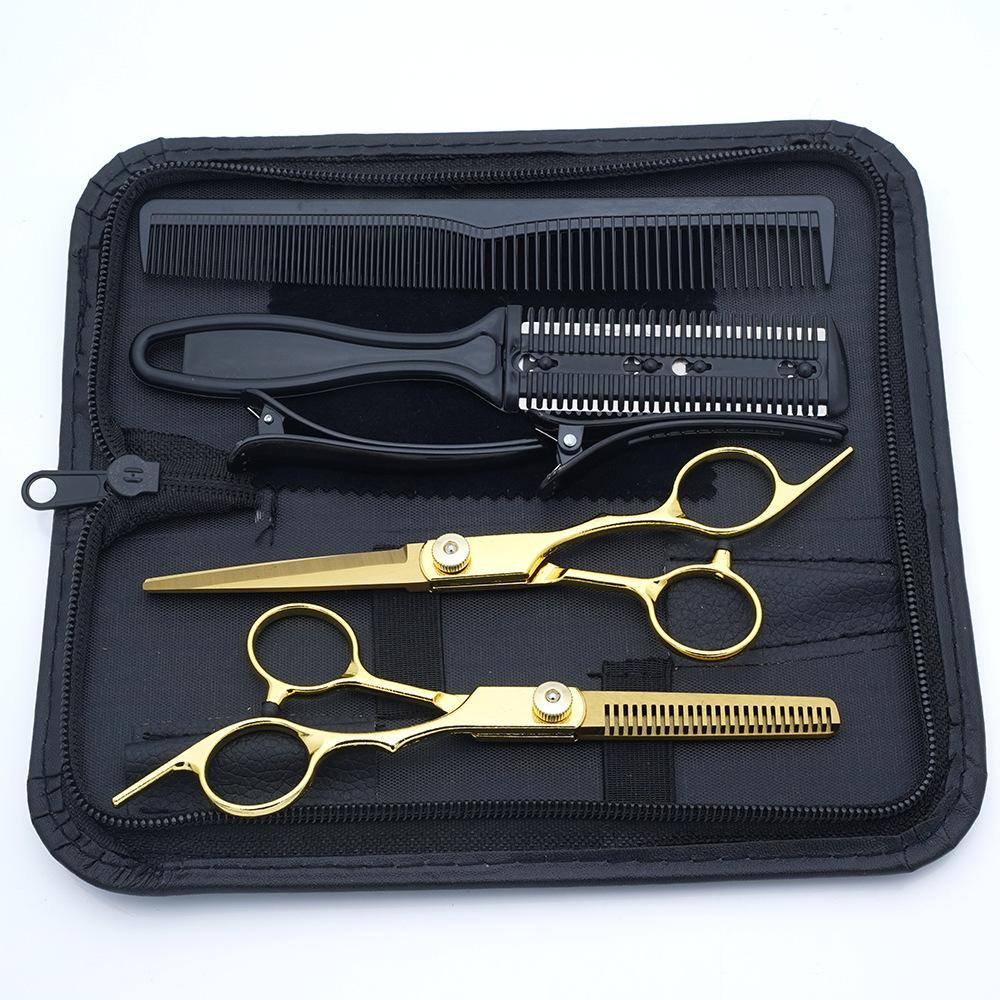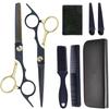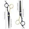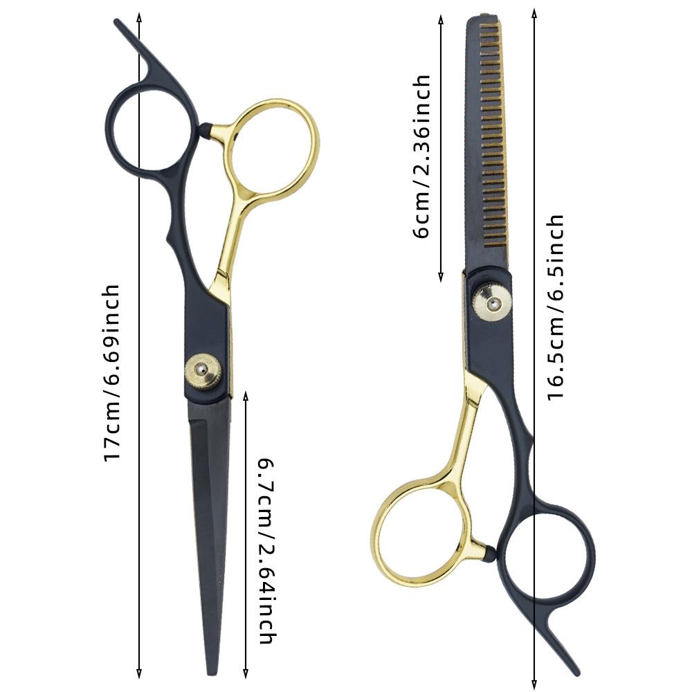 Tijeras de Peluquería Transfronterizas Amazon Negro Dorado Tijeras Planas de Entresacar para Flequillo, Tijeras de Puntas Abiertas, Set de Tijeras de Peluquería