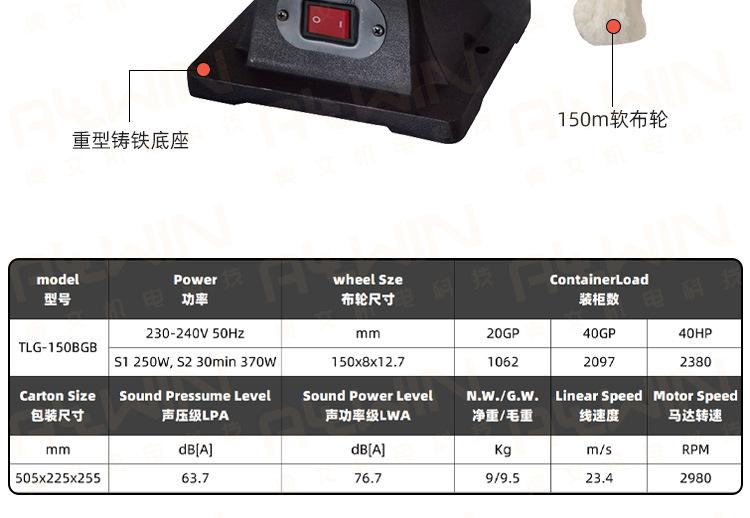 Máquina Pulidora Eléctrica 150mm Máquina Pulidora de Rueda de Tela de Doble Cabezal 220V Máquina Pulidora de Escritorio de Baja Velocidad Pulido de Joyería Metal