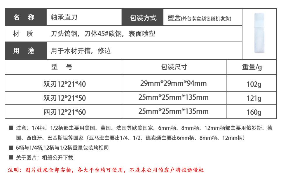 Cuchillo recto con rodamiento de 12 mangos Cuchillo para perfilar y recortar Cuchillo de borde recto Fresadora para carpintería Fresadora para máquina de grabado Ranurado de doble filo y cuatro filos