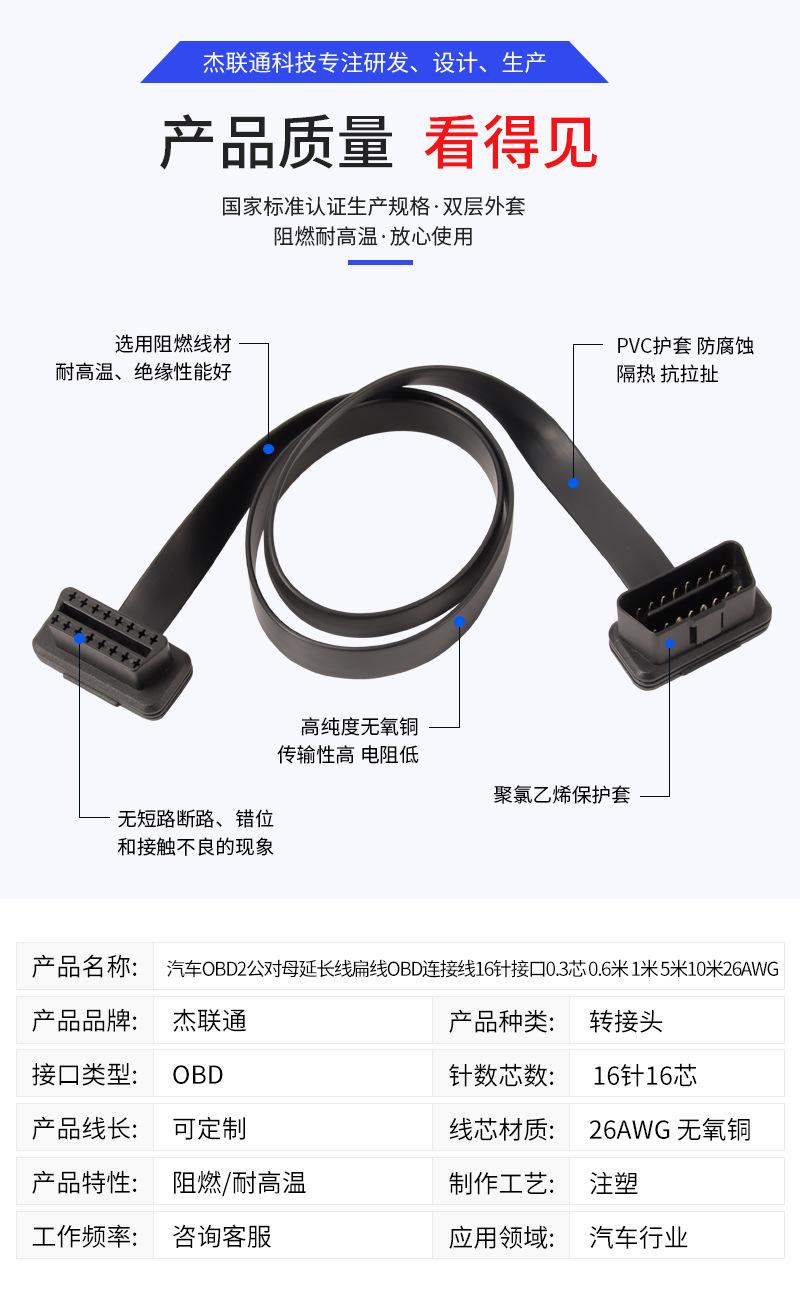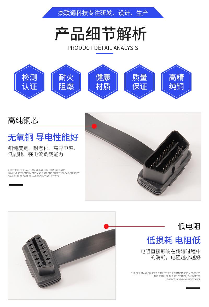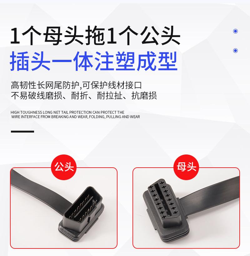 Compra Cable de extensión OBD2 macho a hembra para coche, cable plano, cable de extensión, cable OBD, 16 pines, 16 núcleos, cable de interfaz al por mayor en Joom.pro