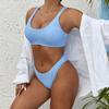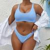Traje de baño bikini de dos piezas para mujer, calzón de color sólido