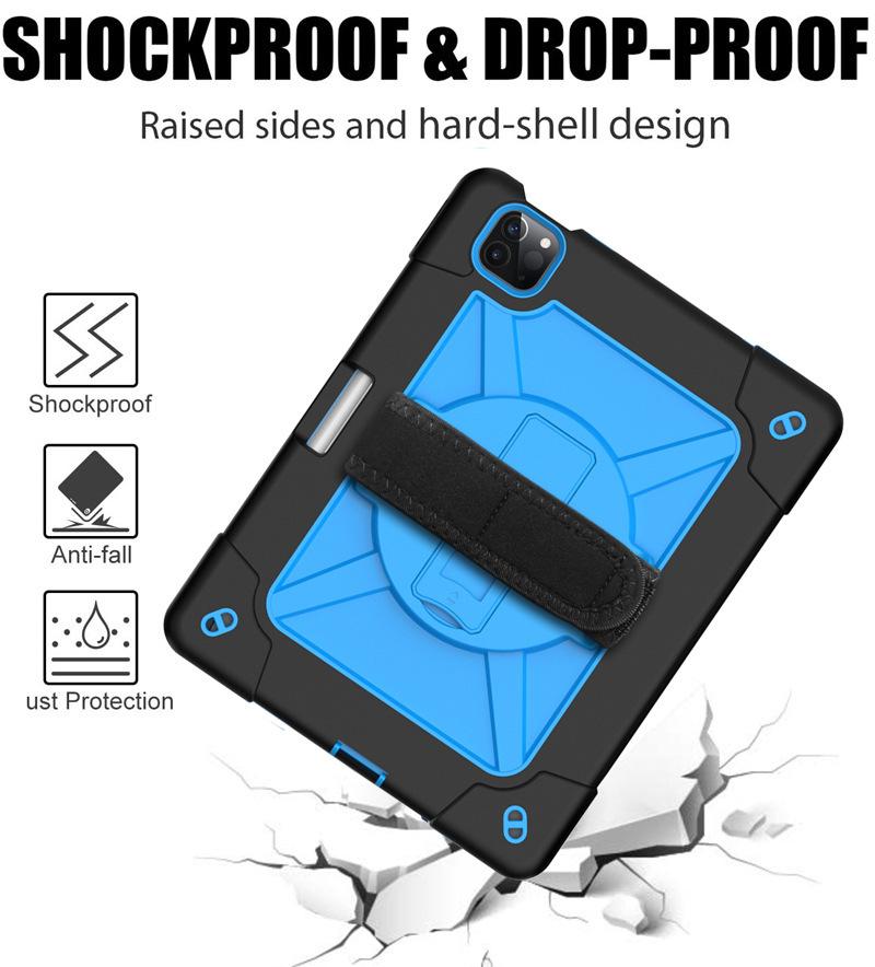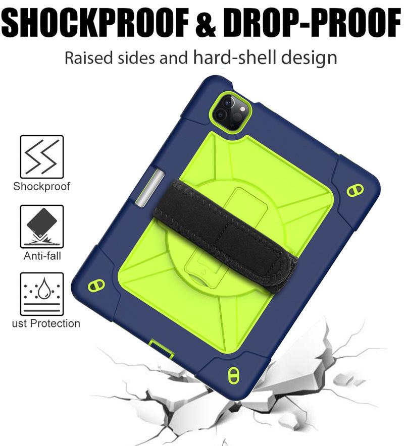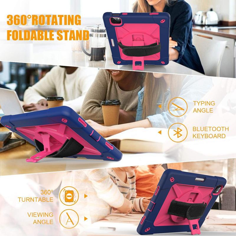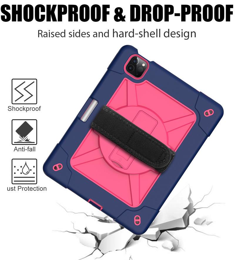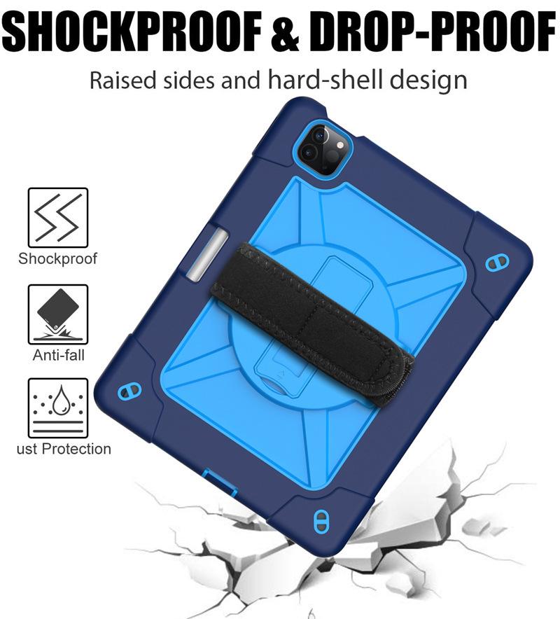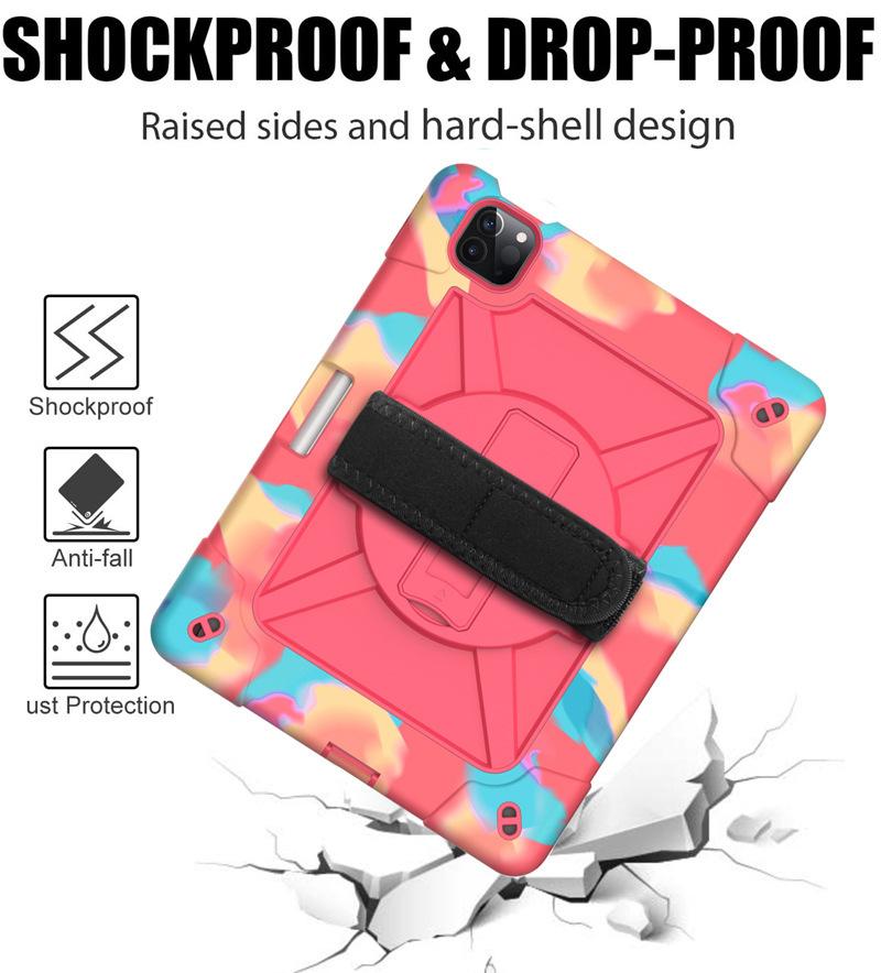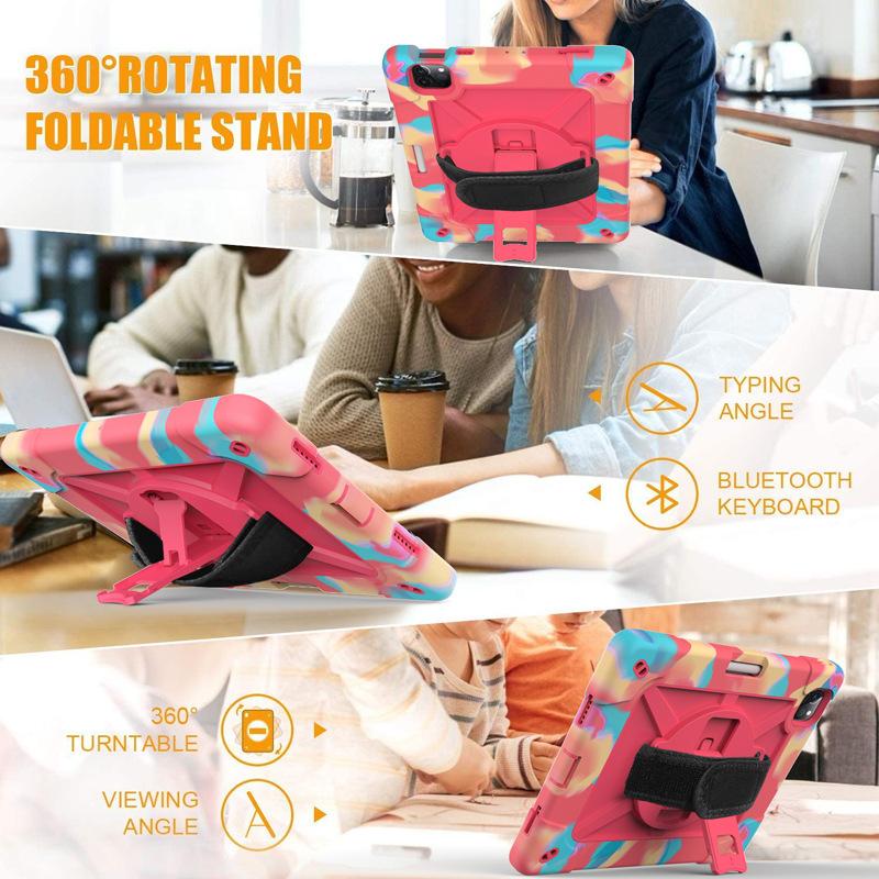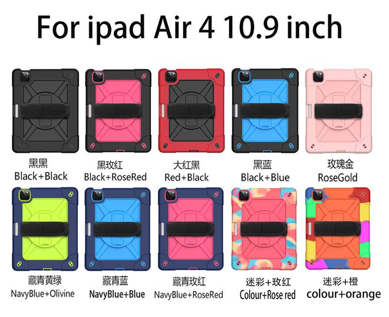 Para iPad Air4 funda plana anticaídas iPad 10.9 pulgadas correa contraste silicona PC cubierta protectora giratoria