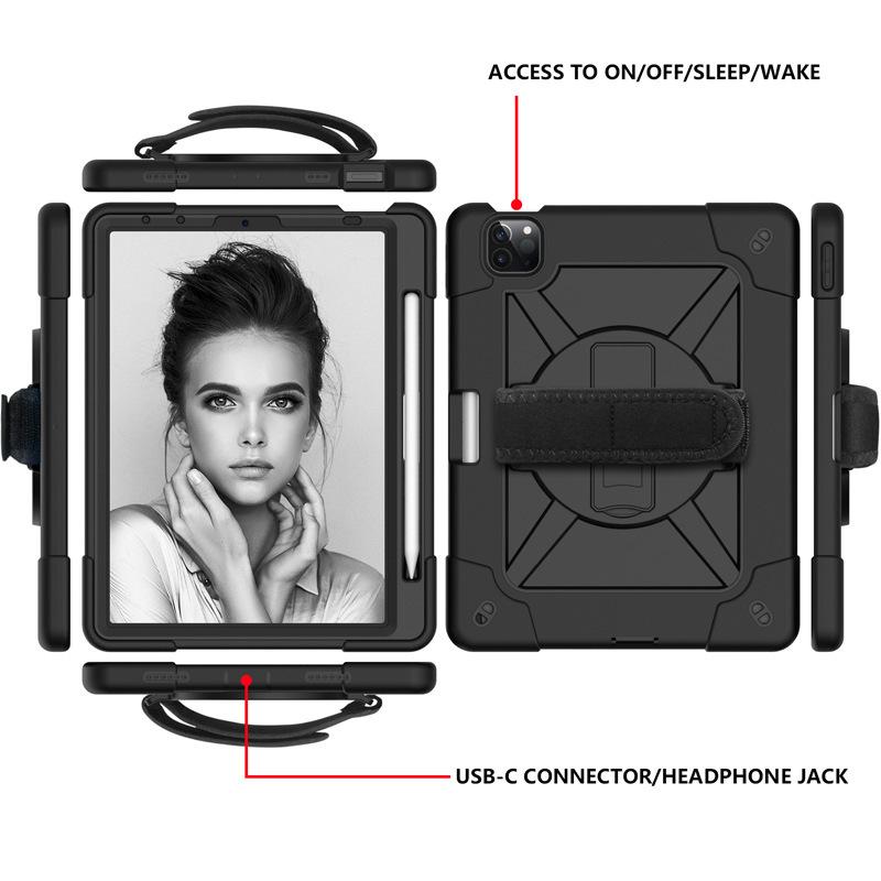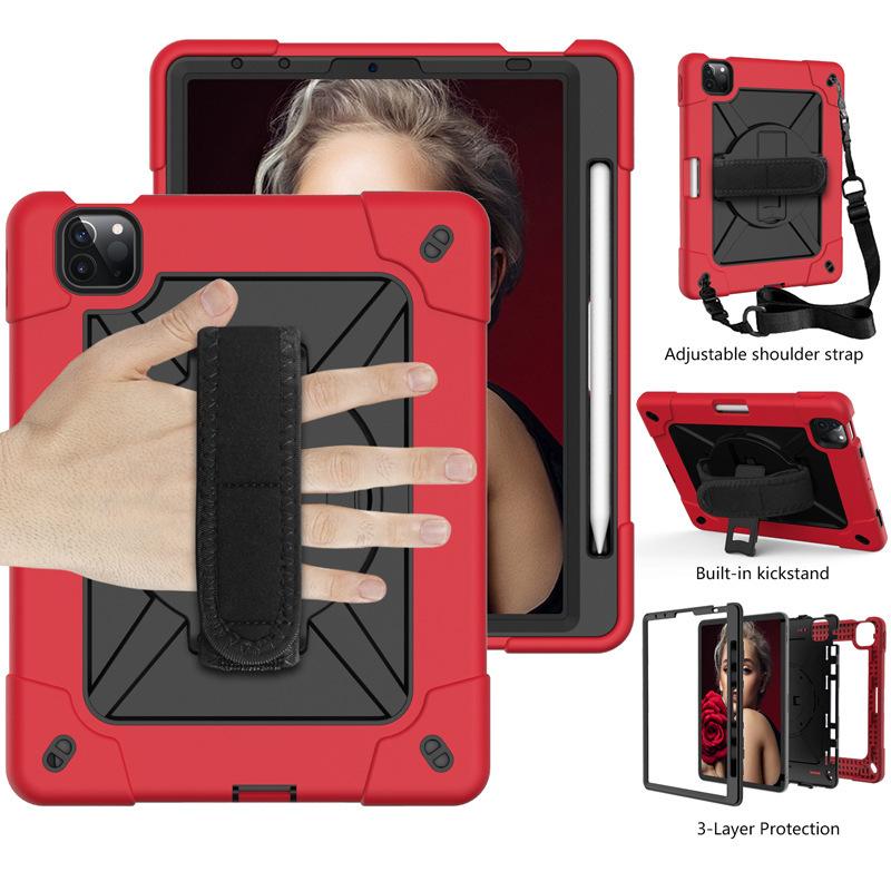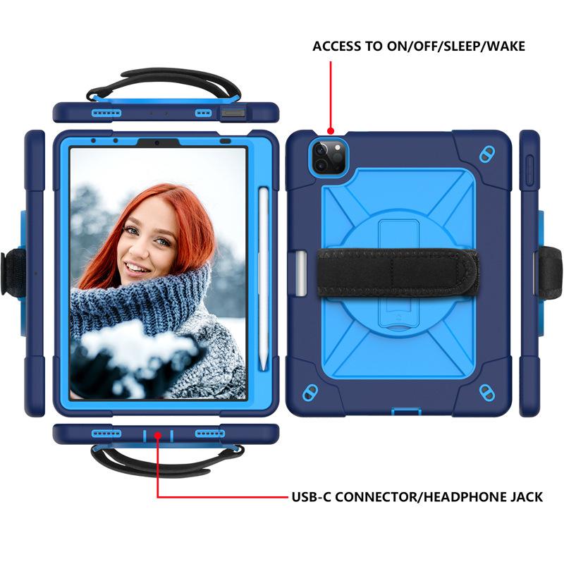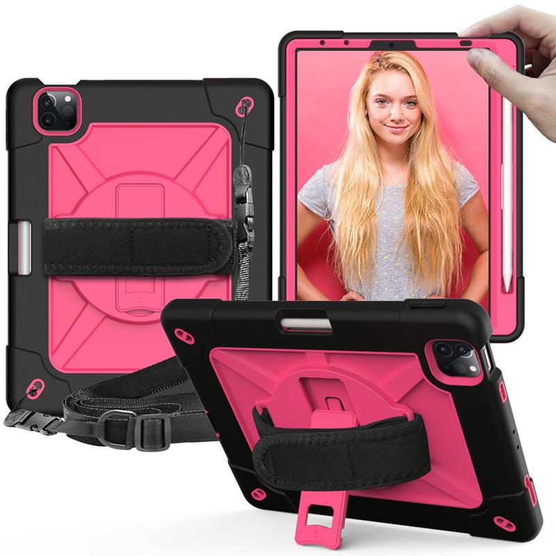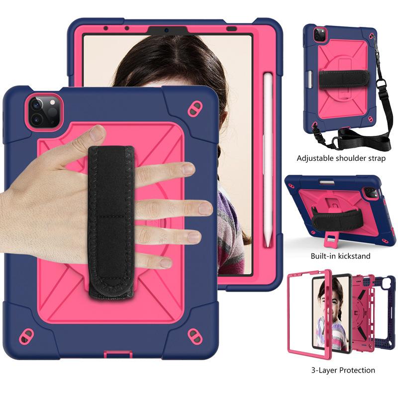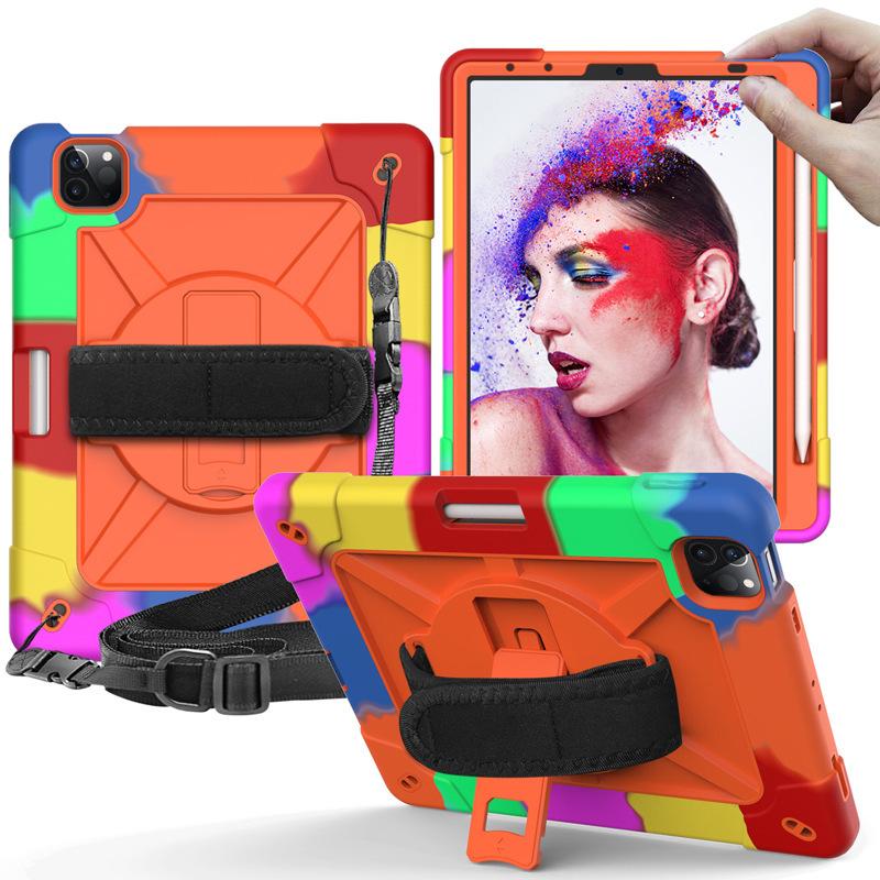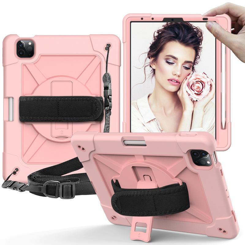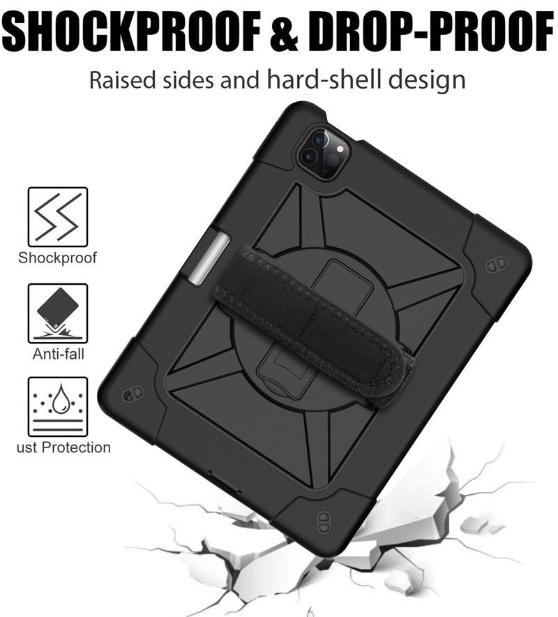 Para iPad Air4 funda plana anticaídas iPad 10.9 pulgadas correa contraste silicona PC cubierta protectora giratoria