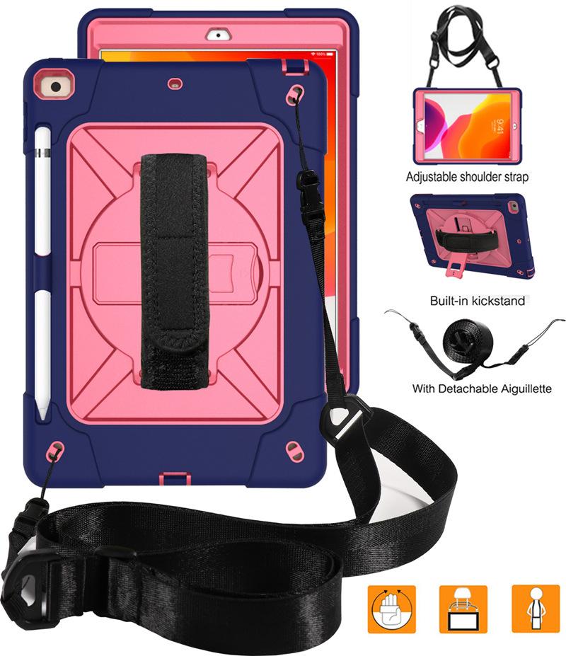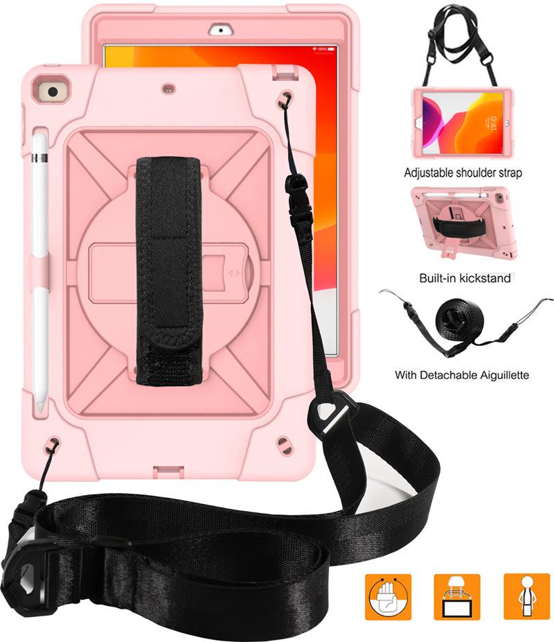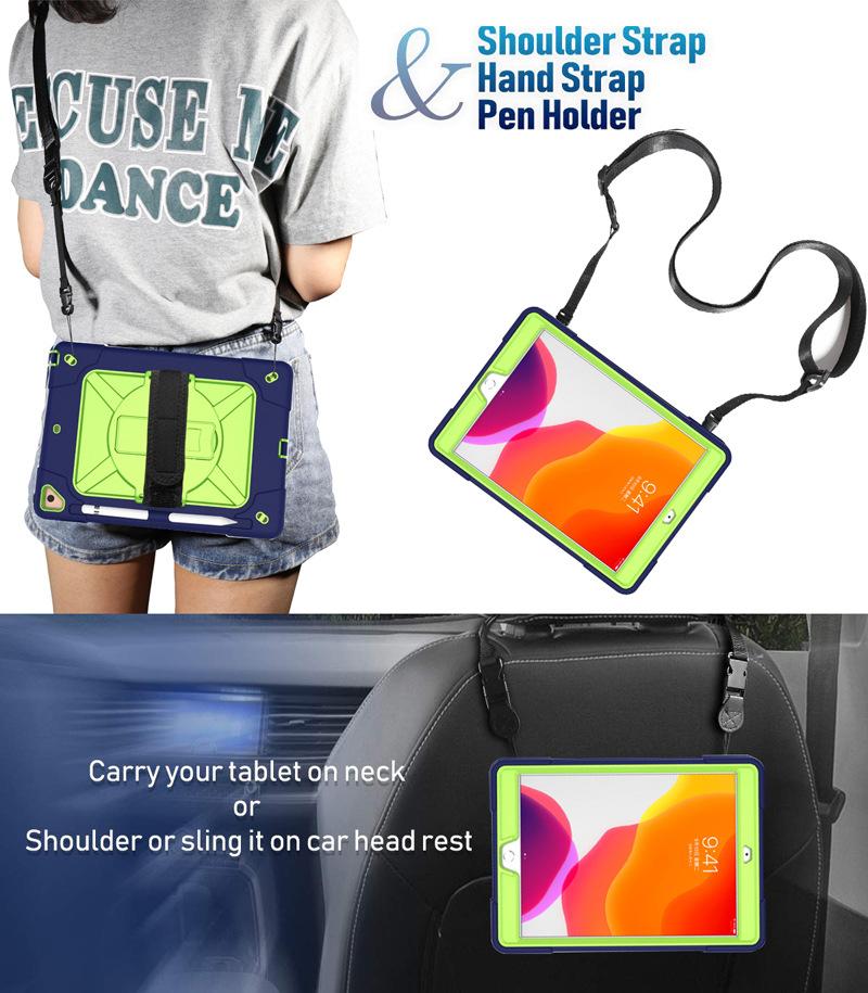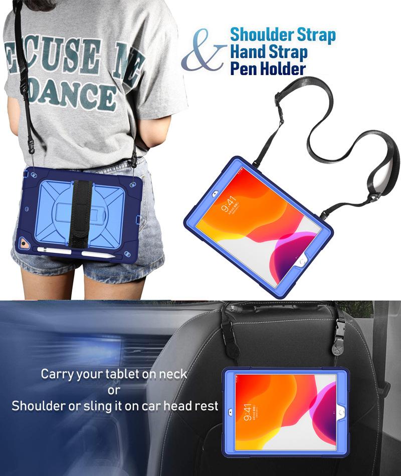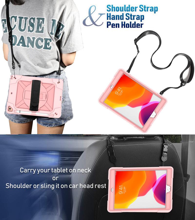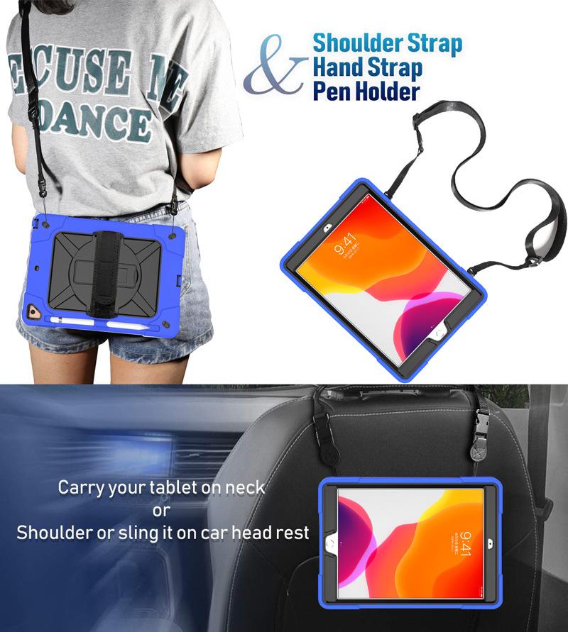 Para iPad 10.2 2019 silicona PC anticaída funda plana correa de mano correa para el hombro soporte giratorio funda protectora para iPad