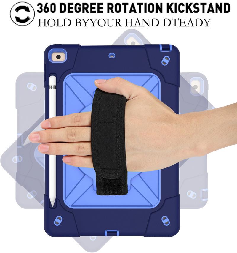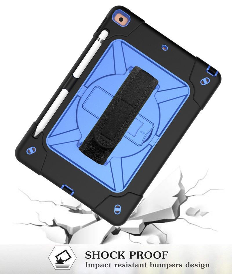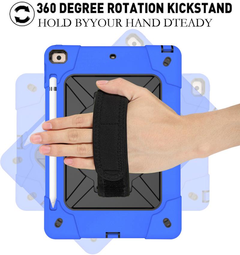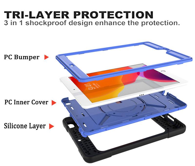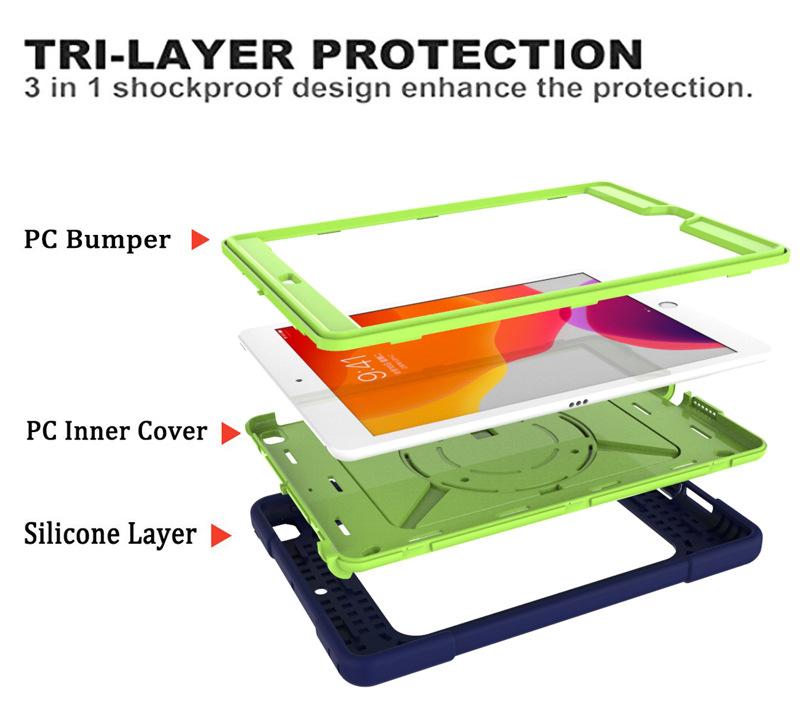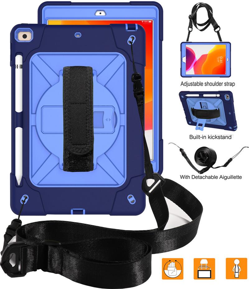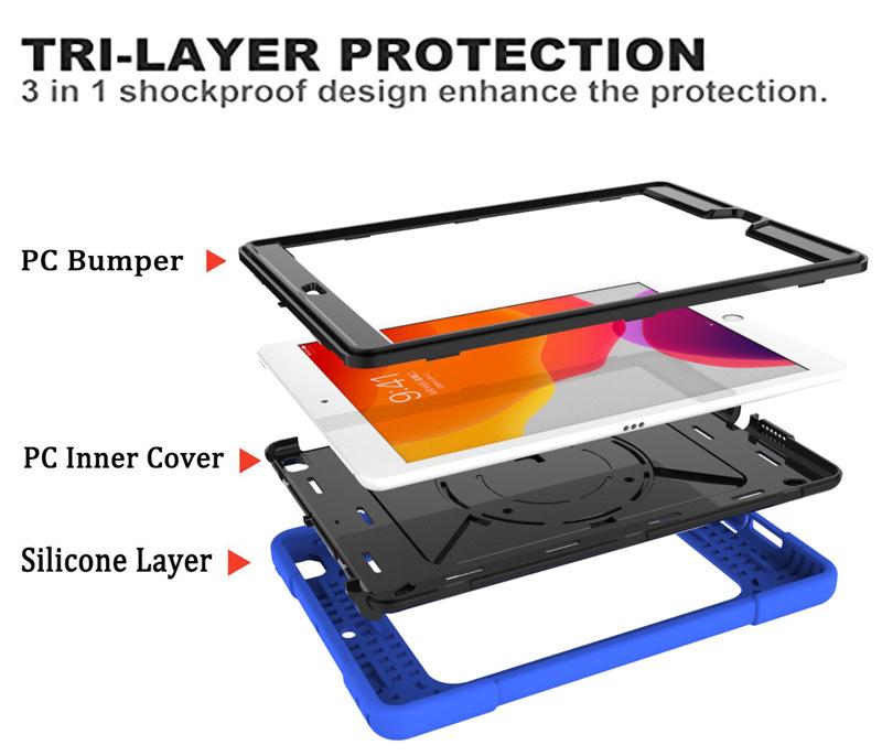 Para iPad 10.2 2019 silicona PC anticaída funda plana correa de mano correa para el hombro soporte giratorio funda protectora para iPad