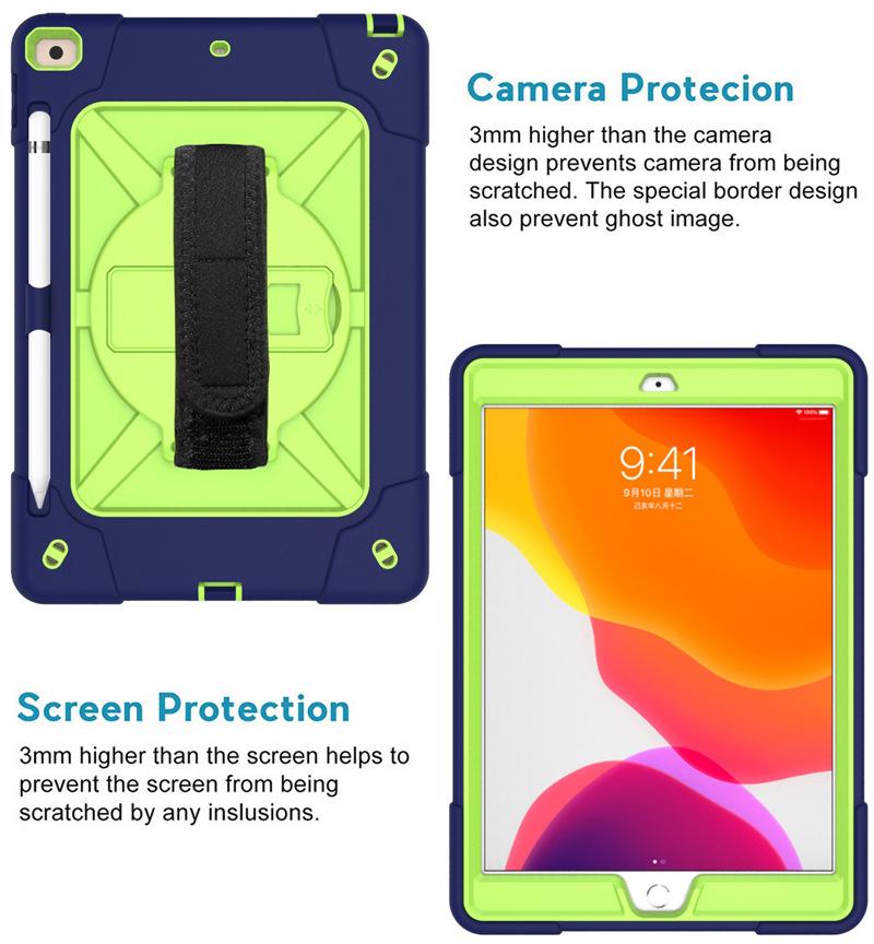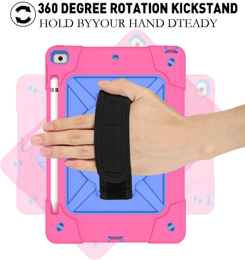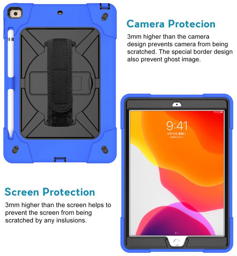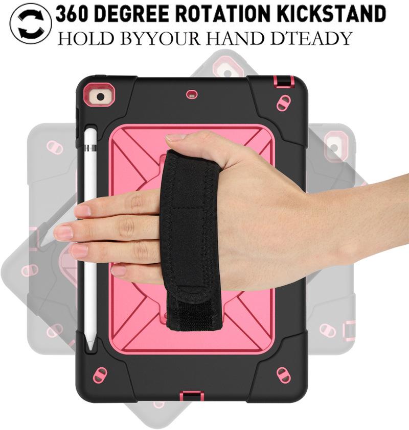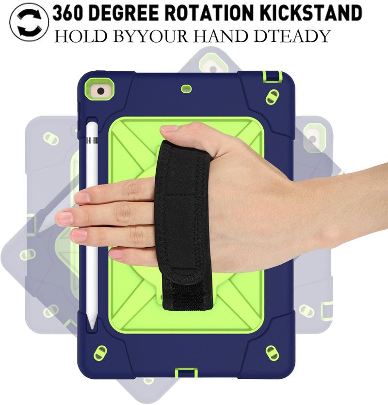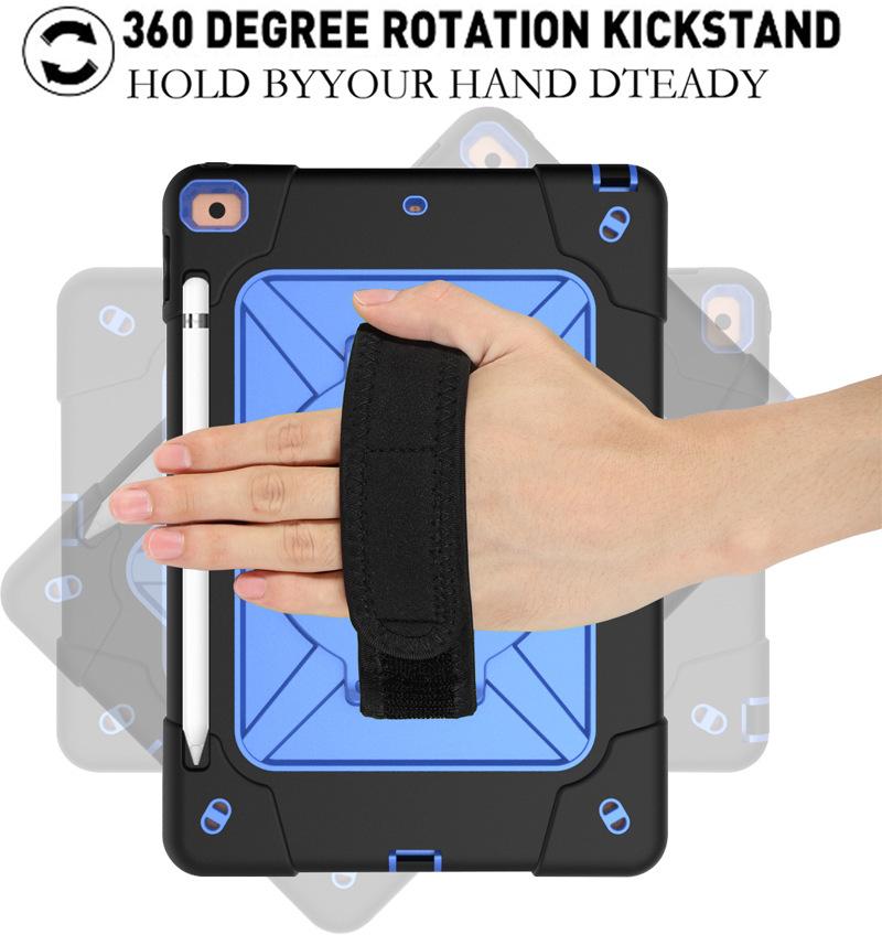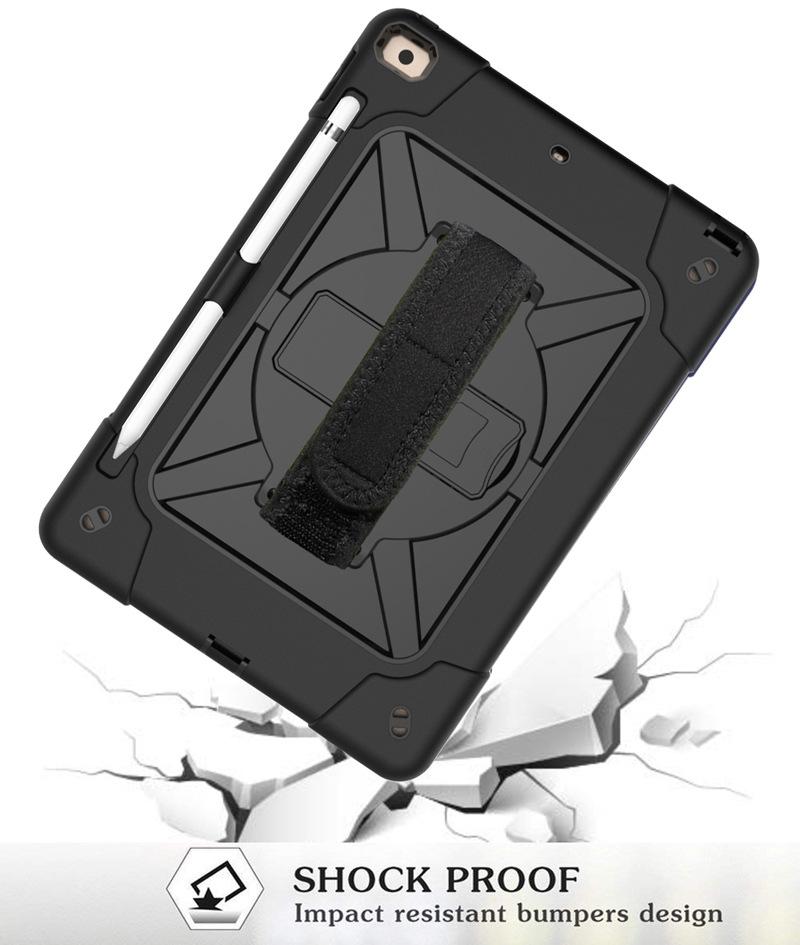 Para iPad 10.2 2019 silicona PC anticaída funda plana correa de mano correa para el hombro soporte giratorio funda protectora para iPad