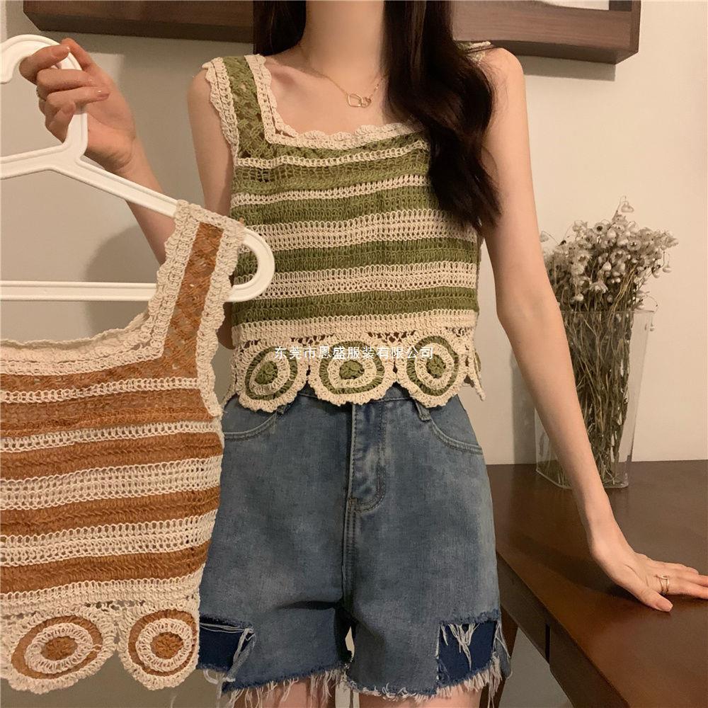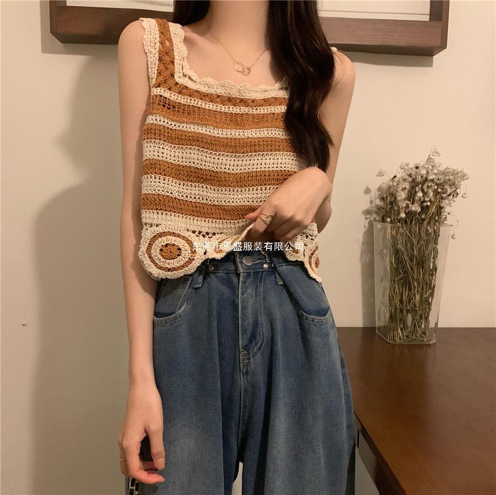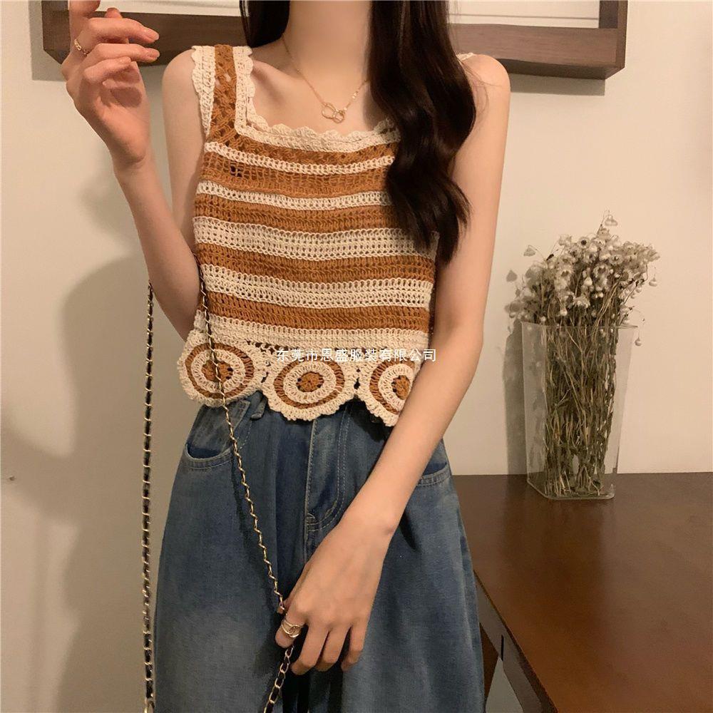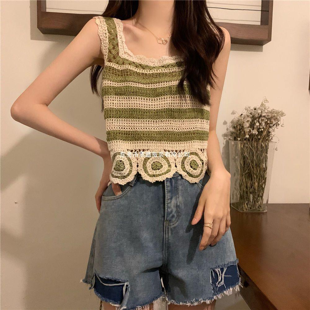 Compra Top Corto sin Mangas, Camisola Tejida a Rayas Retro, Ropa Interior para Mujer, Diseño de Verano, Ropa Exterior Holgada Calada al por mayor en Joom.pro