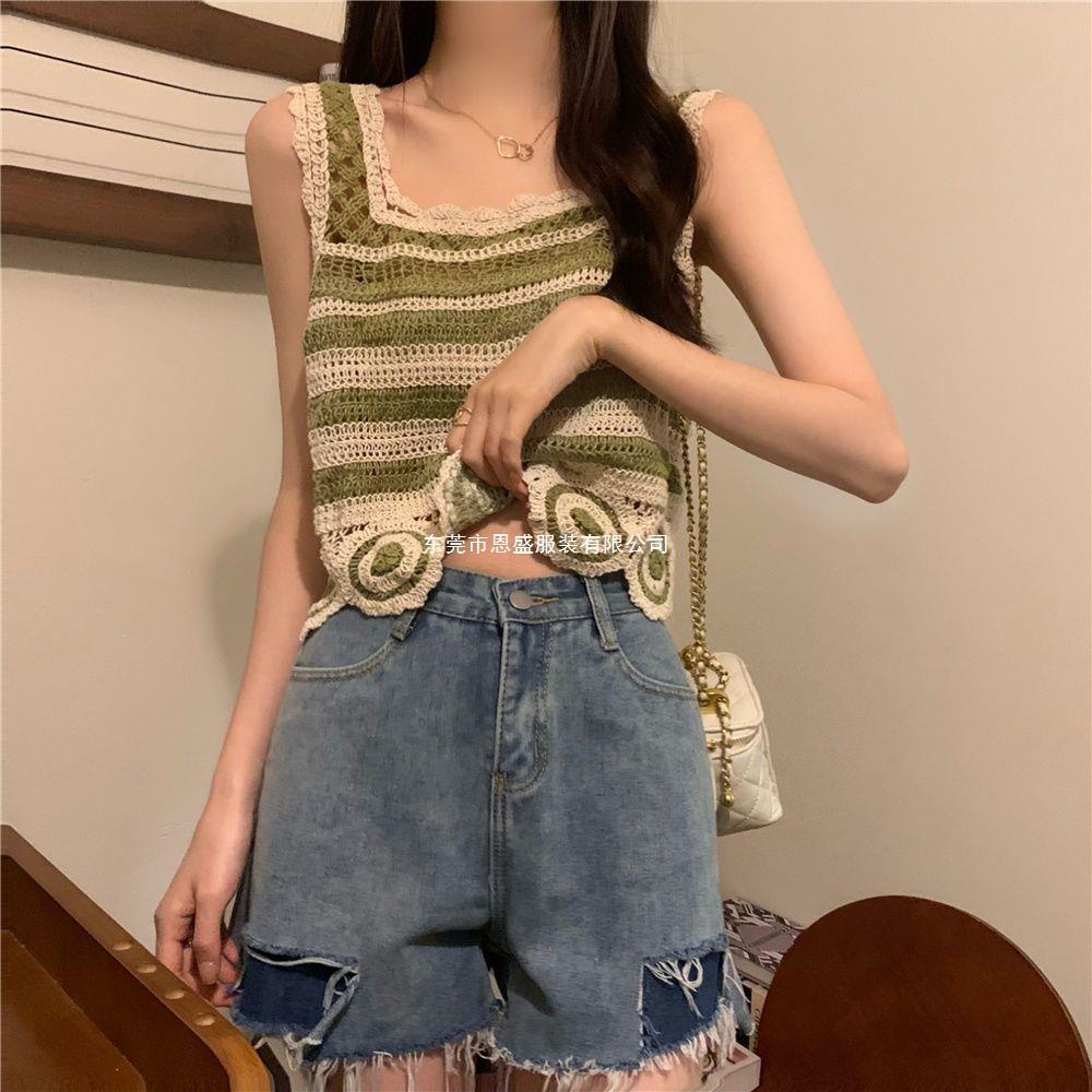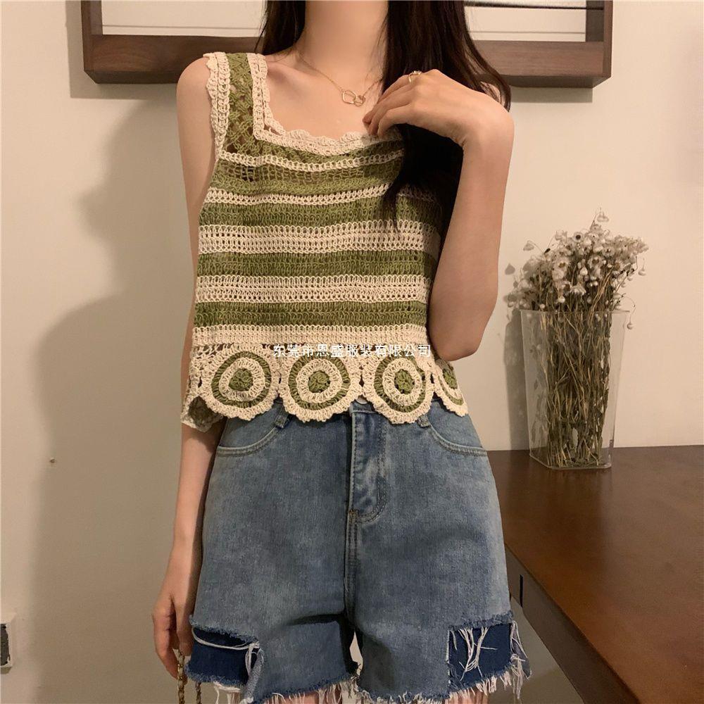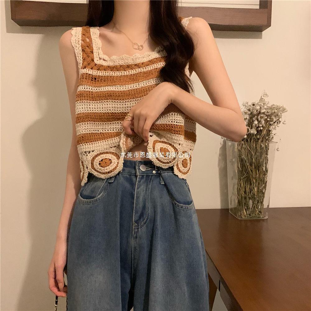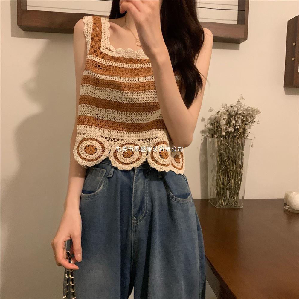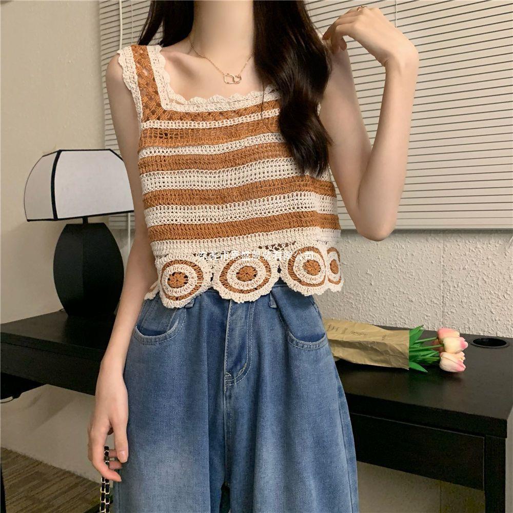 Compra Top Corto sin Mangas, Camisola Tejida a Rayas Retro, Ropa Interior para Mujer, Diseño de Verano, Ropa Exterior Holgada Calada al por mayor en Joom.pro