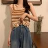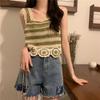 Top Corto sin Mangas, Camisola Tejida a Rayas Retro, Ropa Interior para Mujer, Diseño de Verano, Ropa Exterior Holgada Calada
