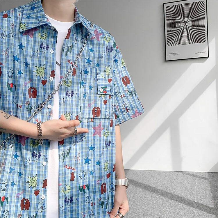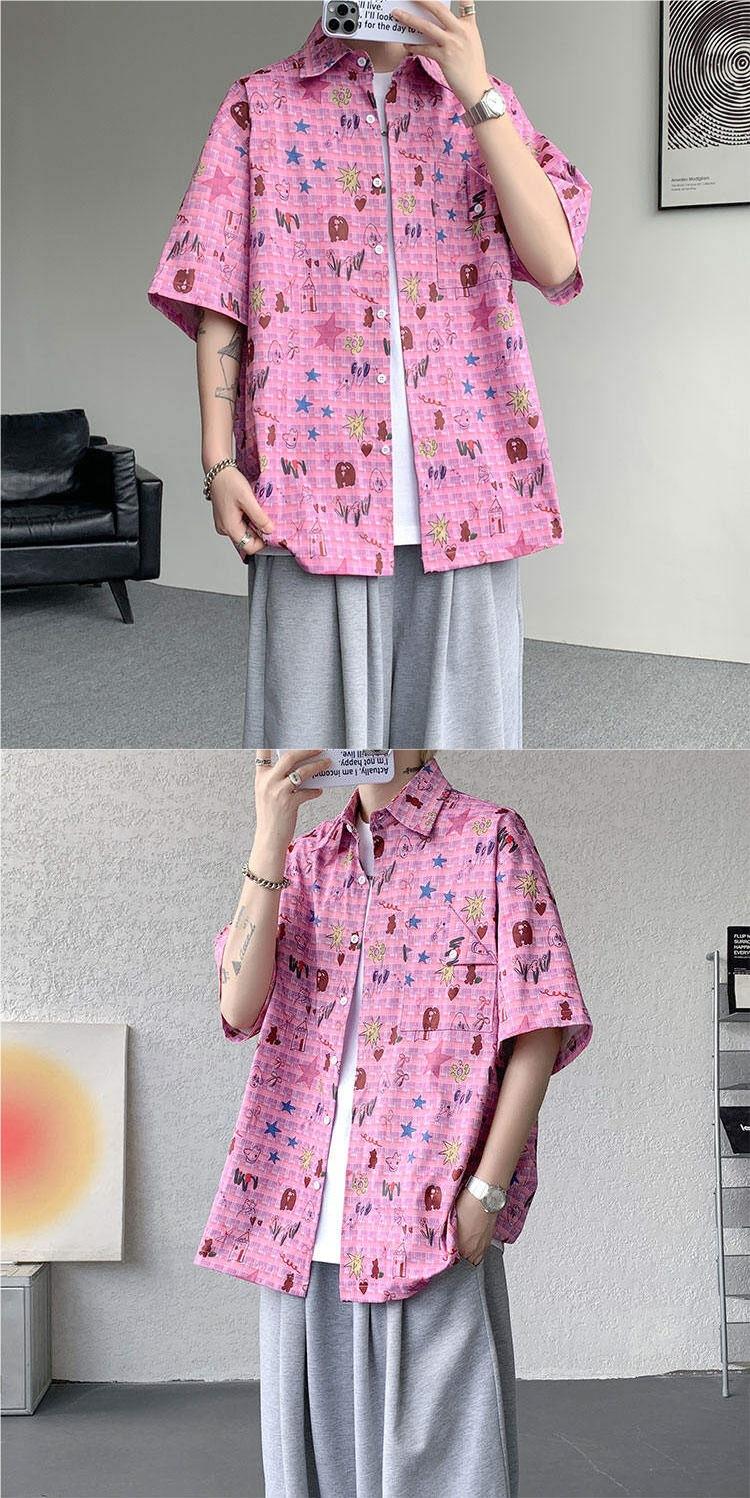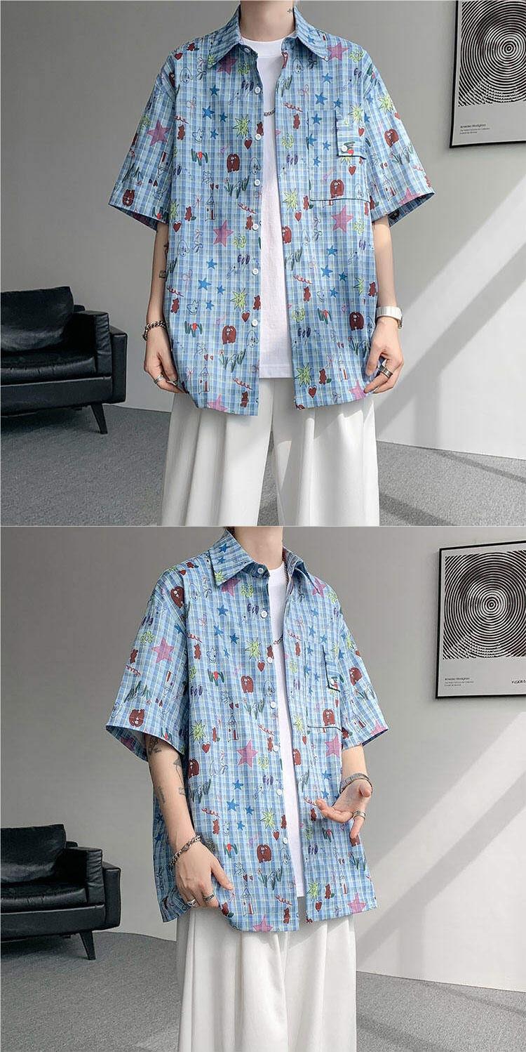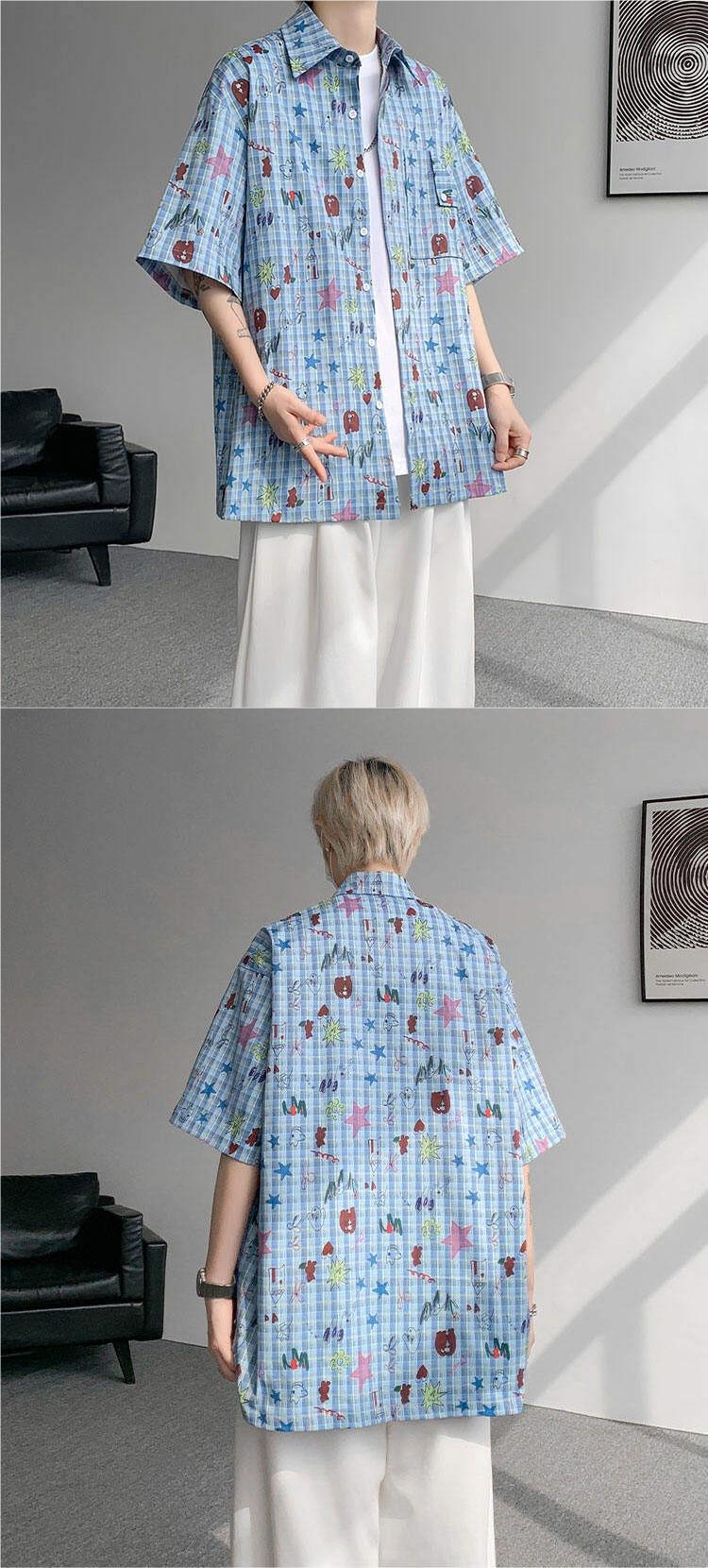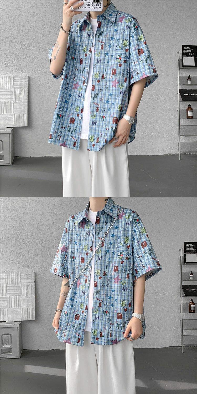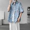 2025 Nueva Camisa de Verano para Hombre de Manga Corta Camisa Estampada Camisa Casual Delgada de Seda de Hielo para Hombre Manga Corta Holgada Talla Grande